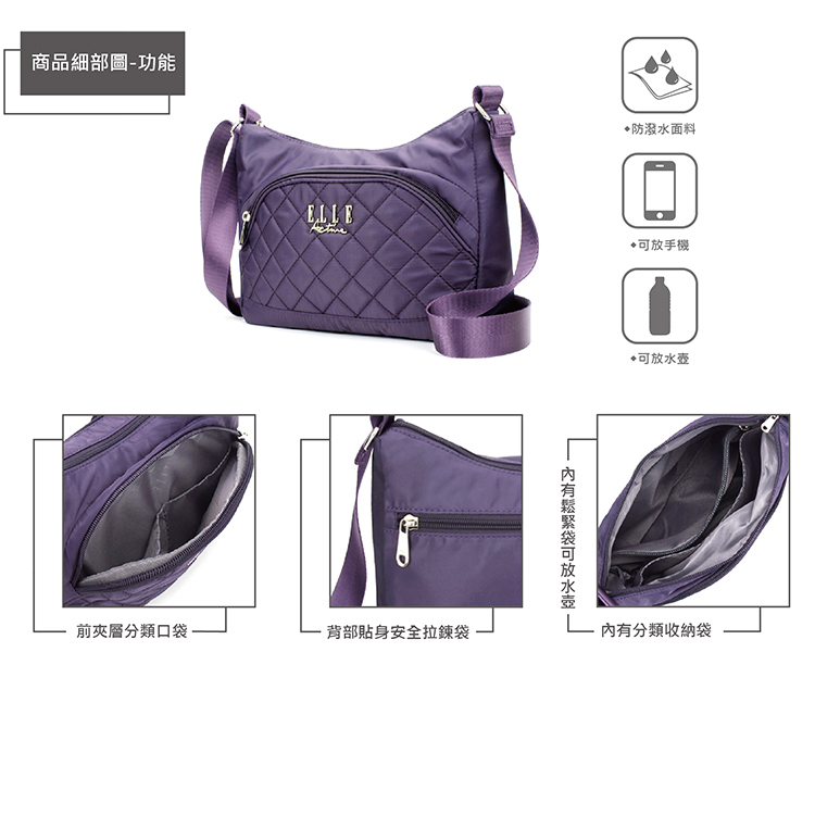 商品品名:【ELLE Active】生活印記系列-側背包/斜背包-大-紫色