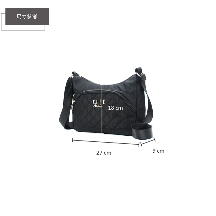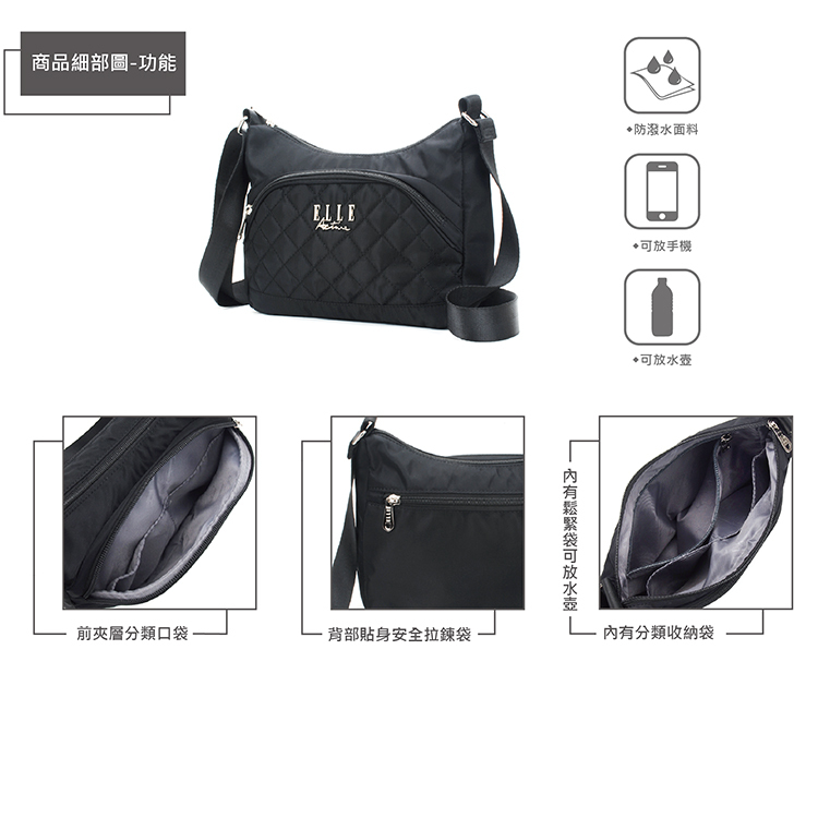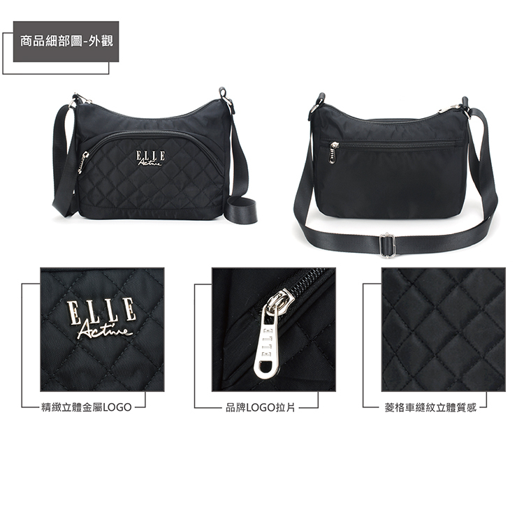 商品品名:【ELLE Active】生活印記系列-側背包/斜背包-大-黑色