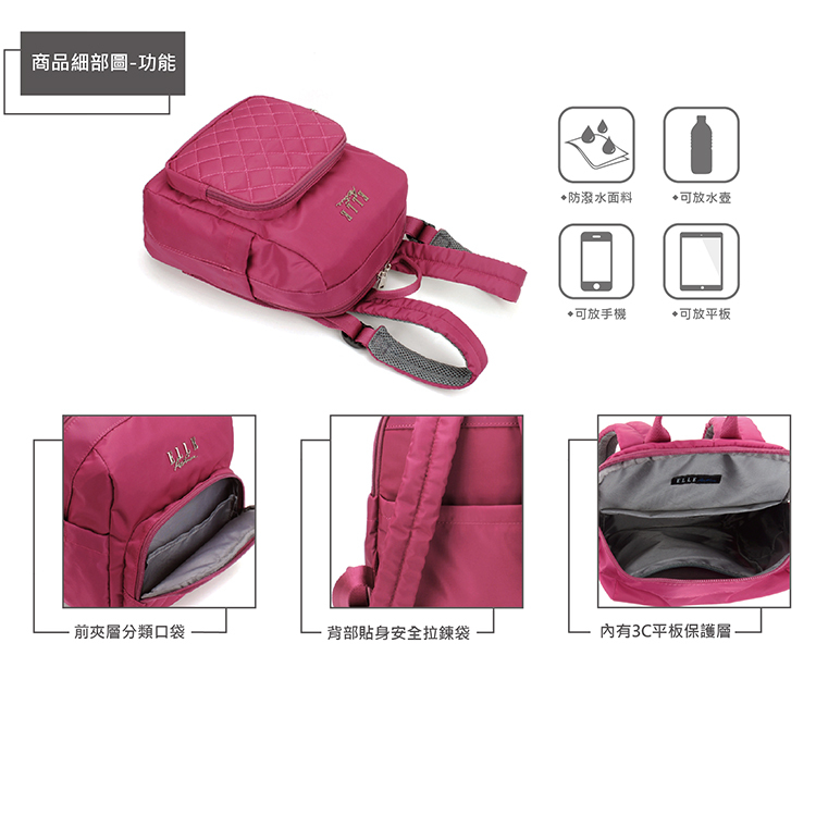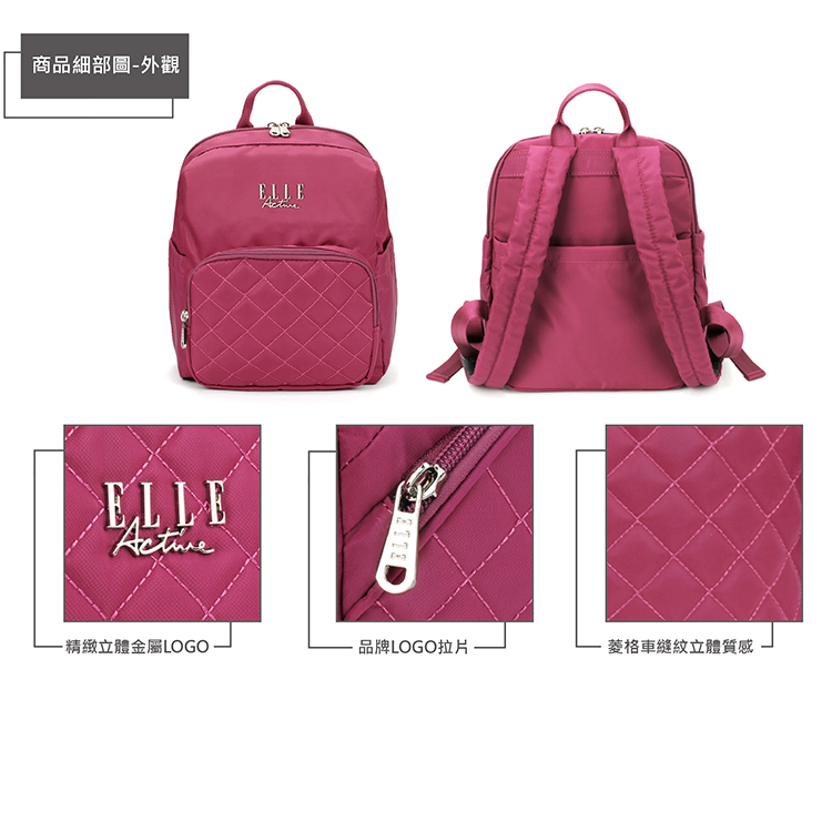 商品品名:【ELLE Active】生活印記系列-後背包-小-桃紅色
