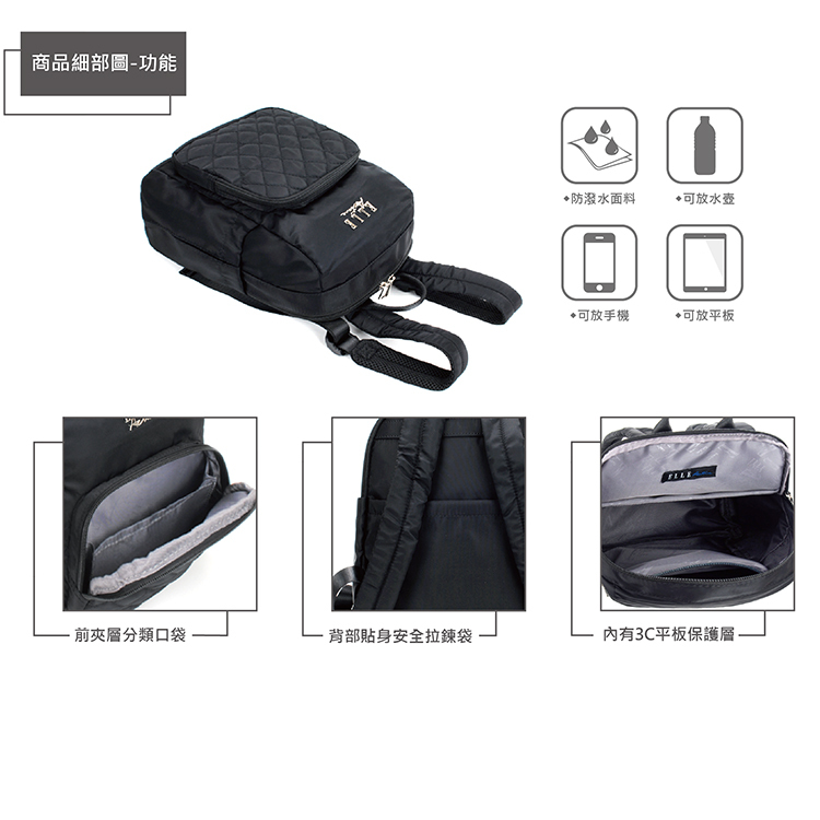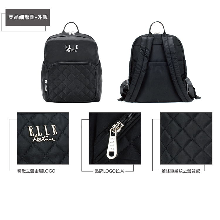 商品品名:【ELLE Active】生活印記系列-後背包-小-黑色