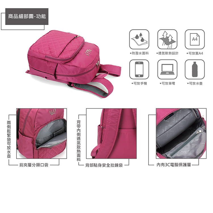 商品品名:【ELLE Active】】生活印記系列-後背包-桃紅色
