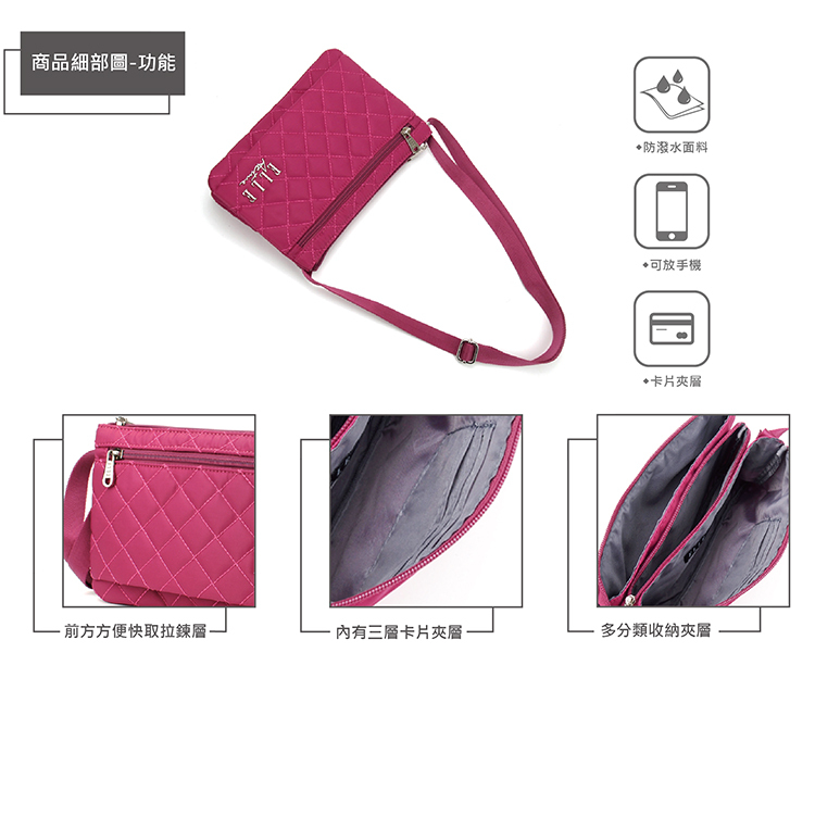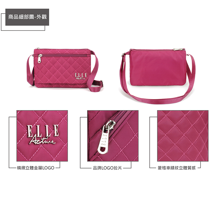 商品品名:【ELLE Active】生活印記系列-隨身側背包/斜背包-小-桃紅色