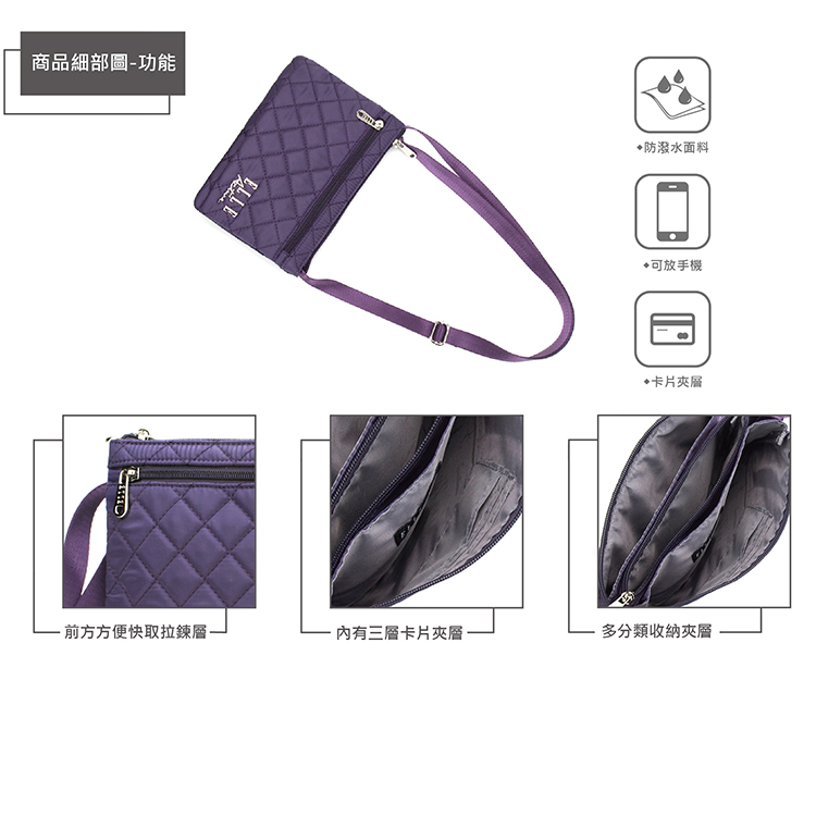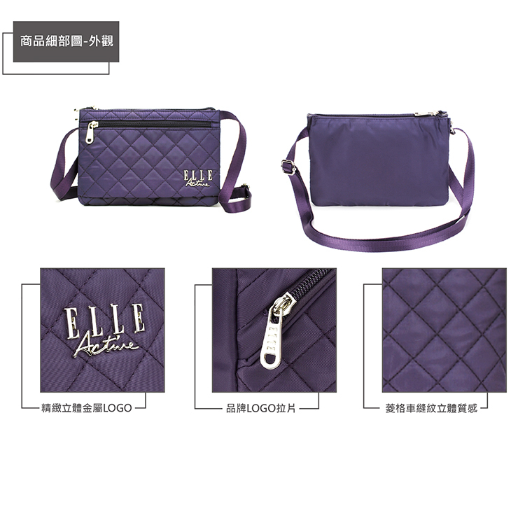 商品品名:【ELLE Active】生活印記系列-隨身側背包/斜背包-小-紫色