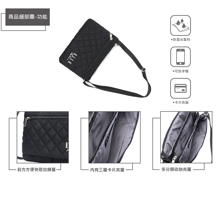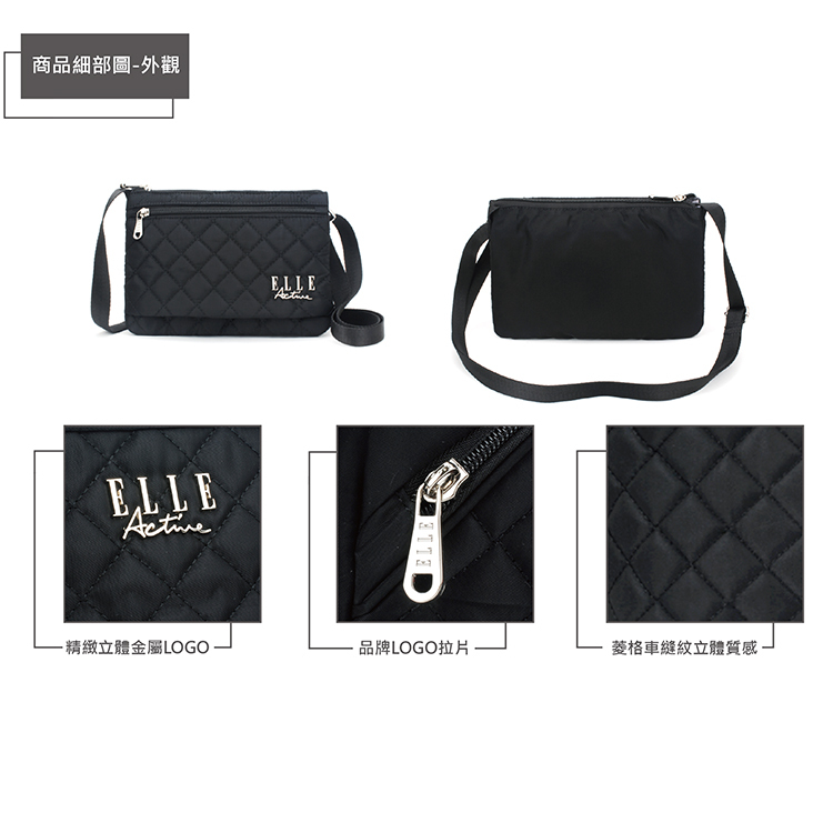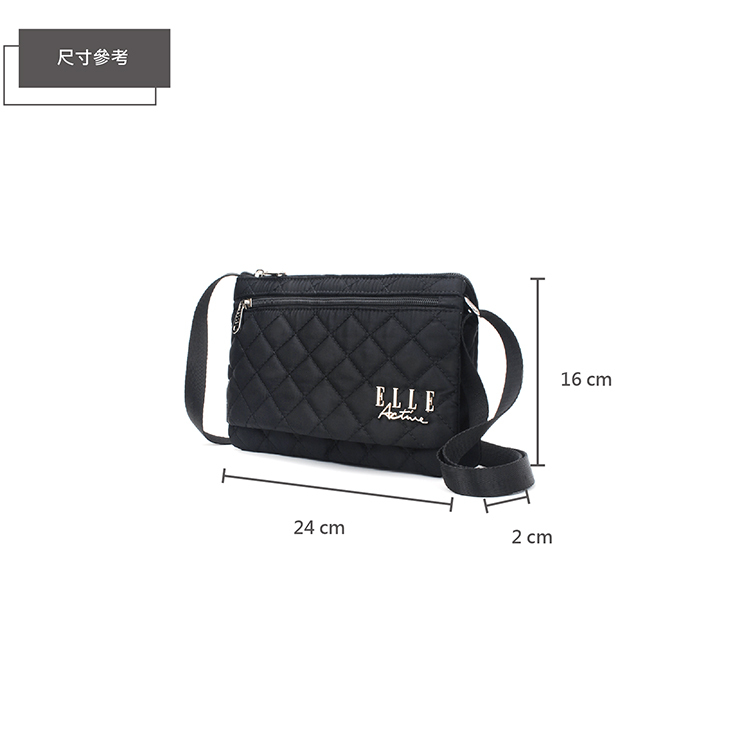 商品品名:【ELLE Active】生活印記系列-隨身側背包/斜背包-小-黑色