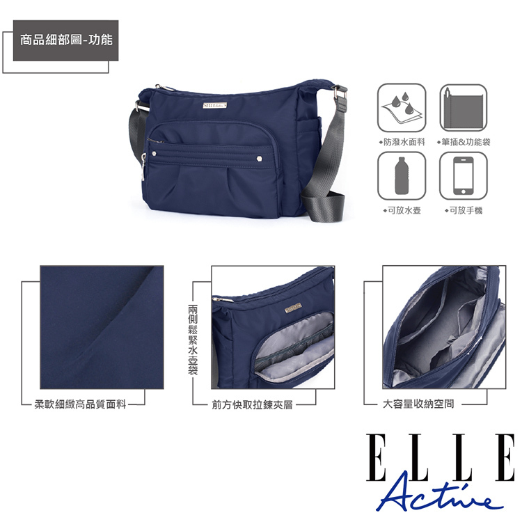 ELLE Active-知性優雅系列-側背包/斜背包-深藍色(中)
