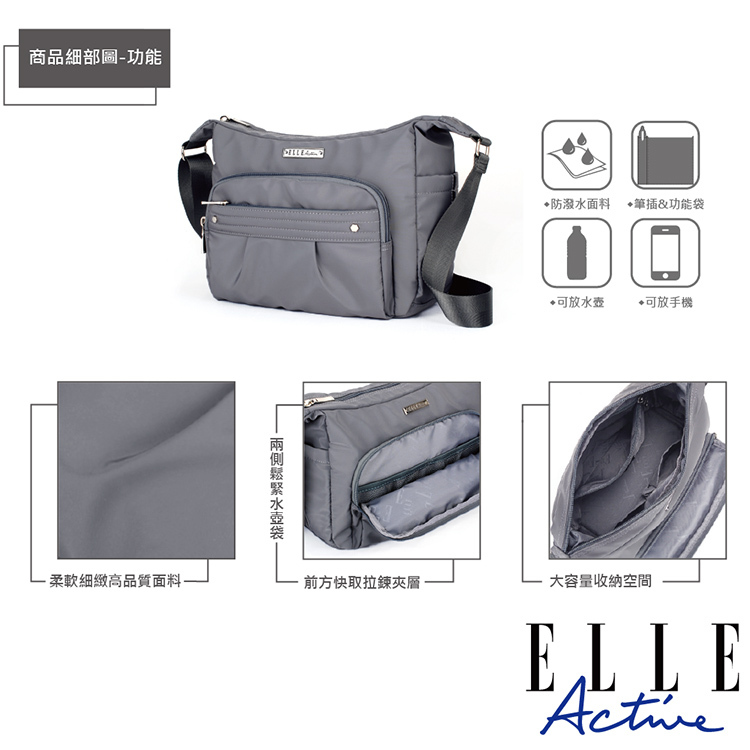 ELLE Active-知性優雅系列-側背包/斜背包-灰色(中)