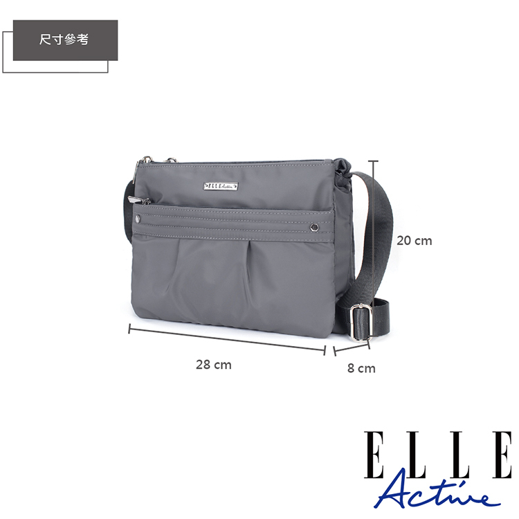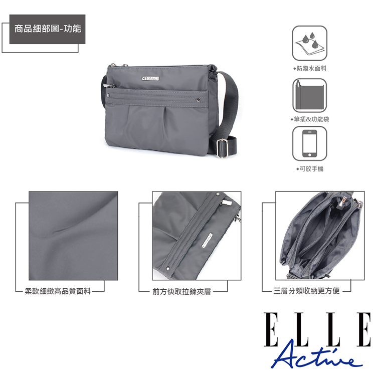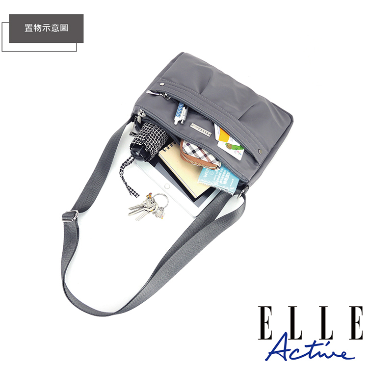 ELLE Active-知性優雅系列-多夾層側背包/斜背包-灰色(小)