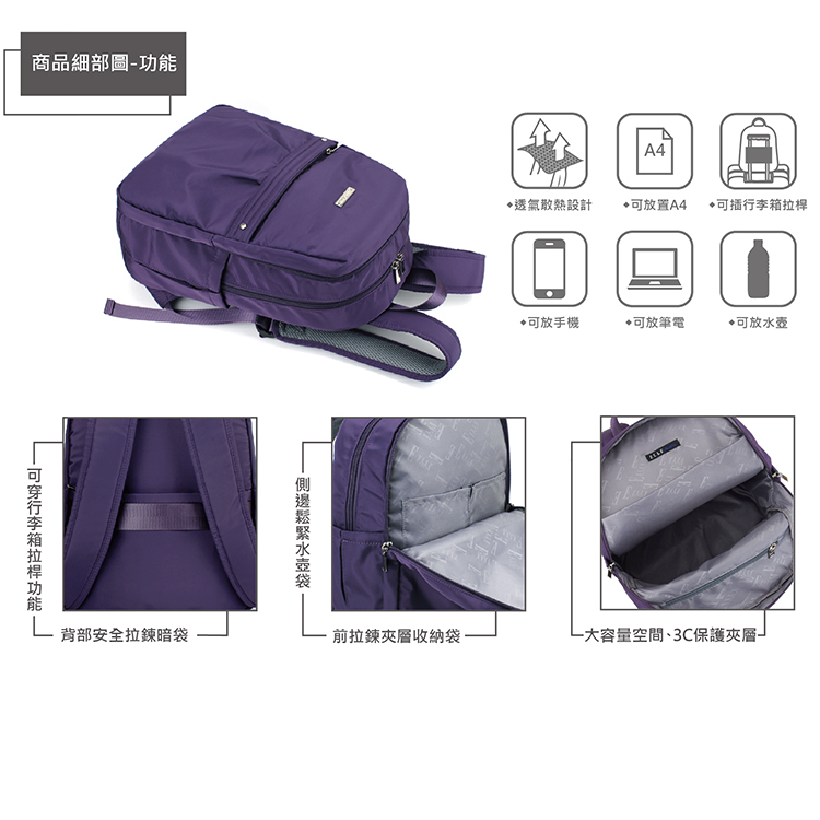 商品品名:【ELLE Active】知性優雅系列- 後背包(紫色)