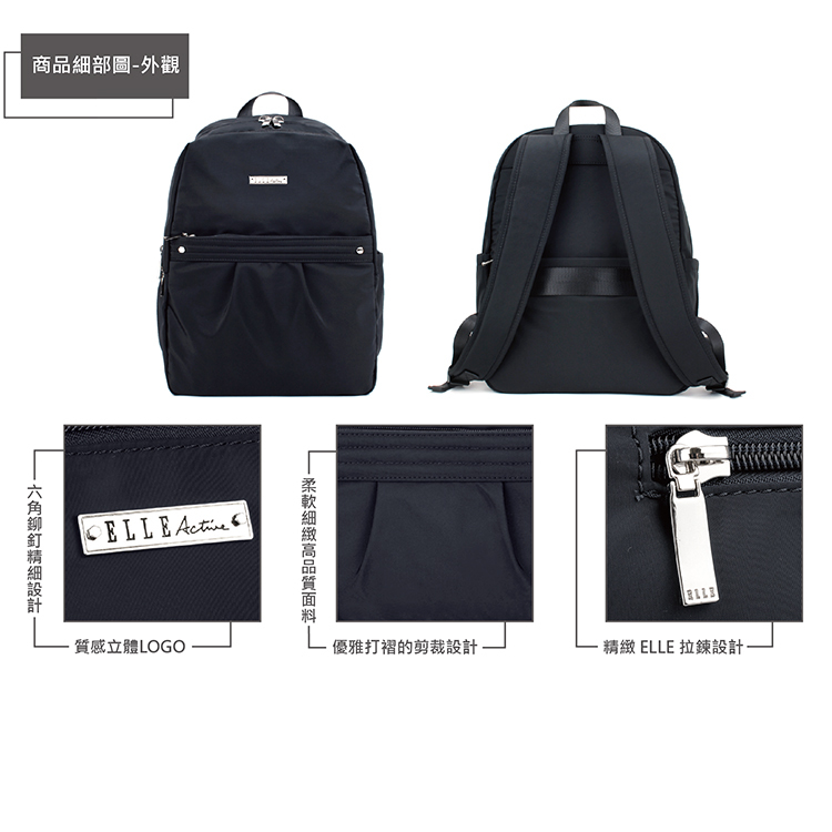 商品品名:【ELLE Active】知性優雅系列- 後背包(黑色)