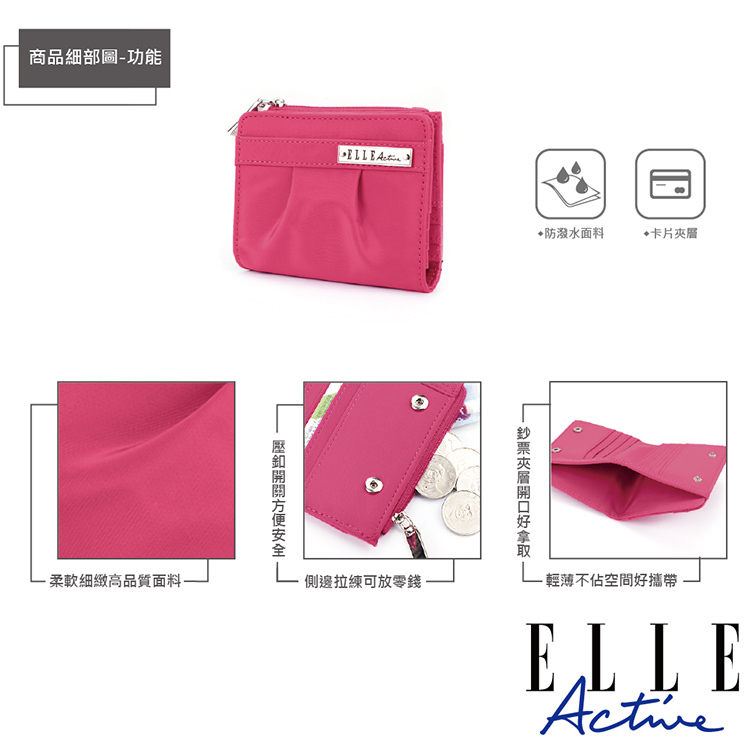 商品品名:【ELLE Active】知性優雅系列-短夾(桃紅色)