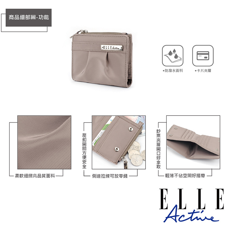 商品品名:【ELLE Active】知性優雅系列-短夾(褐色)