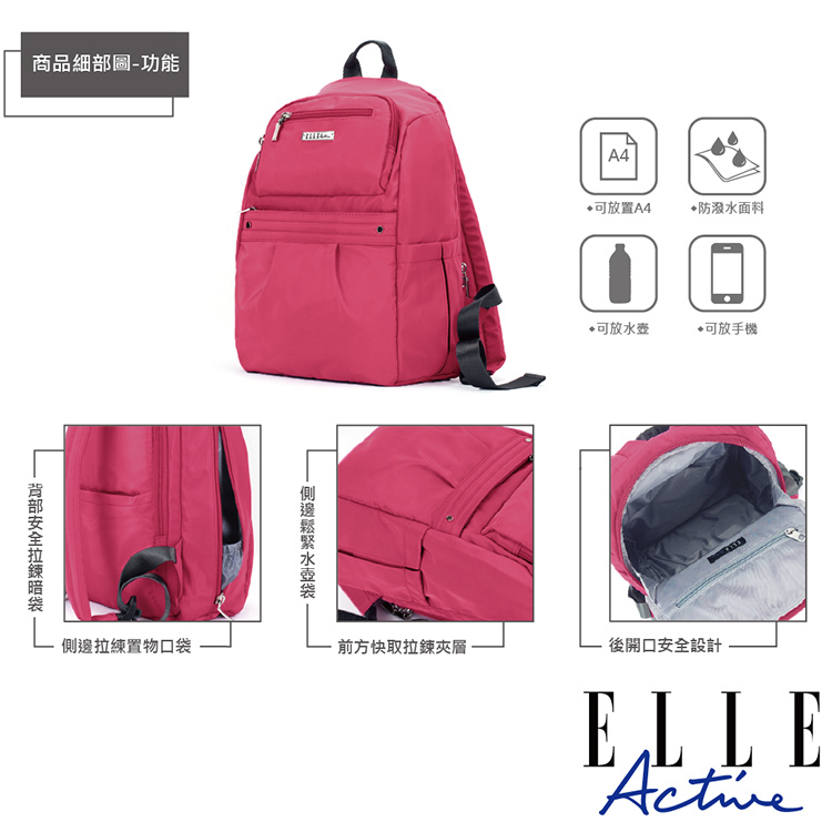 ELLE Active-知性優雅系列-防盜後背包-桃紅色(中)