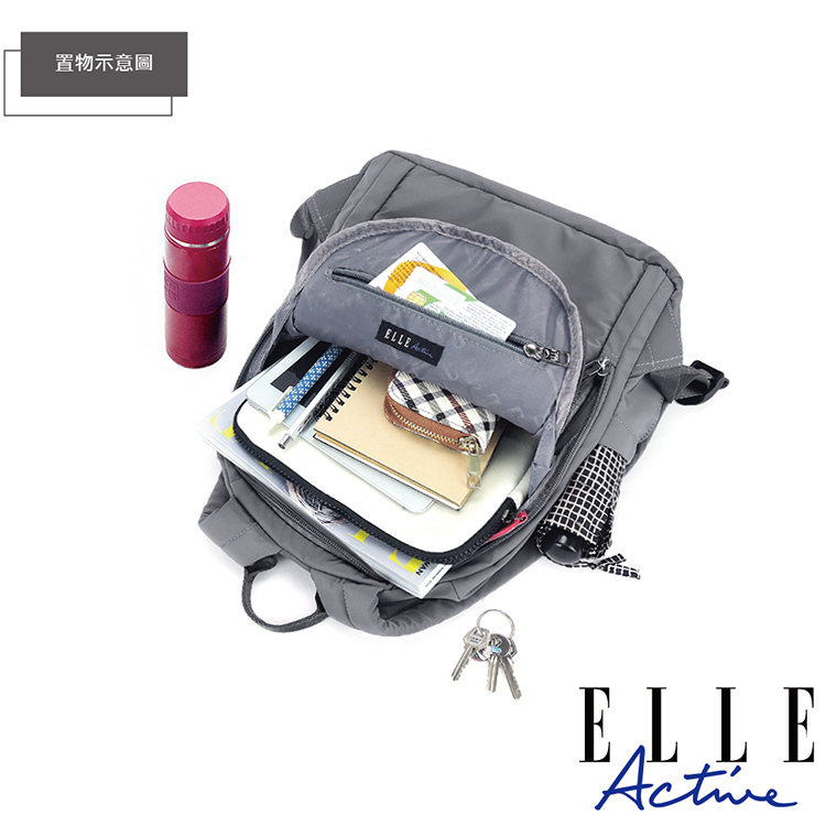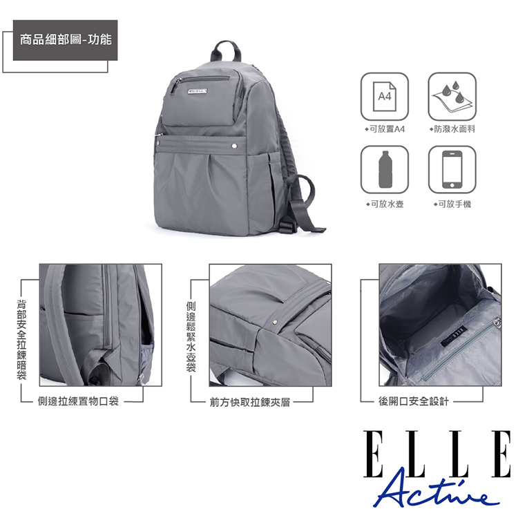商品品名:【ELLE Active】知性優雅系列-防盜 後背包-中(灰色)