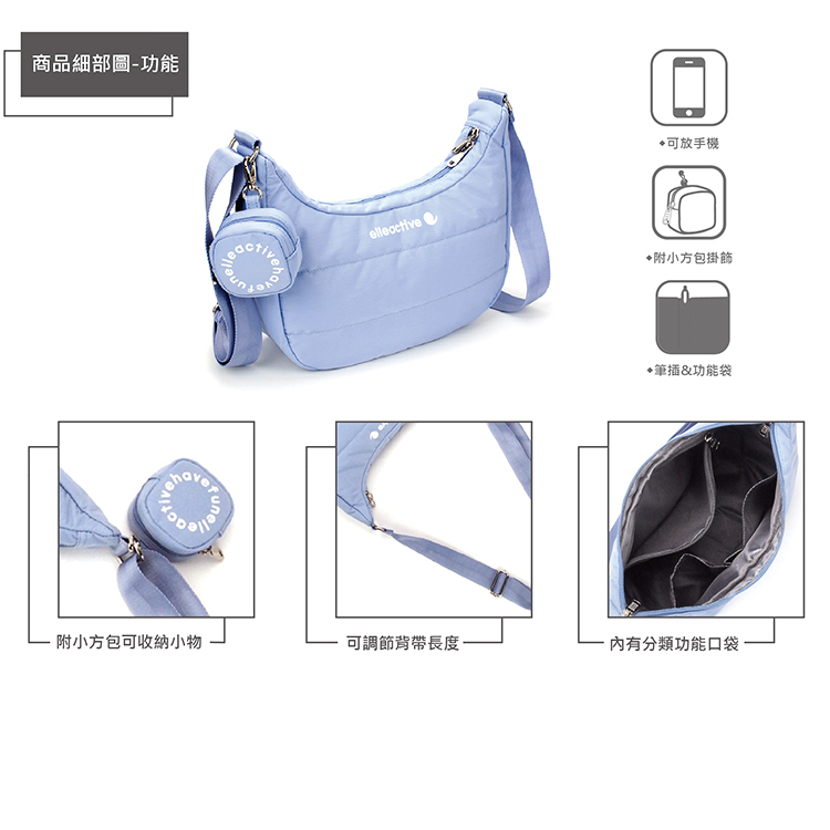 ★彎月弧形外觀,貼合身形,讓外出不單調。