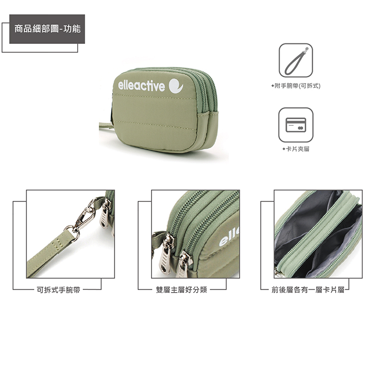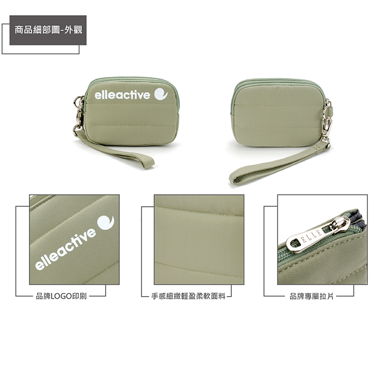商品品名:【ELLE Active】蓬蓬雲朵系列-雙層零錢包/手腕包-抹茶綠