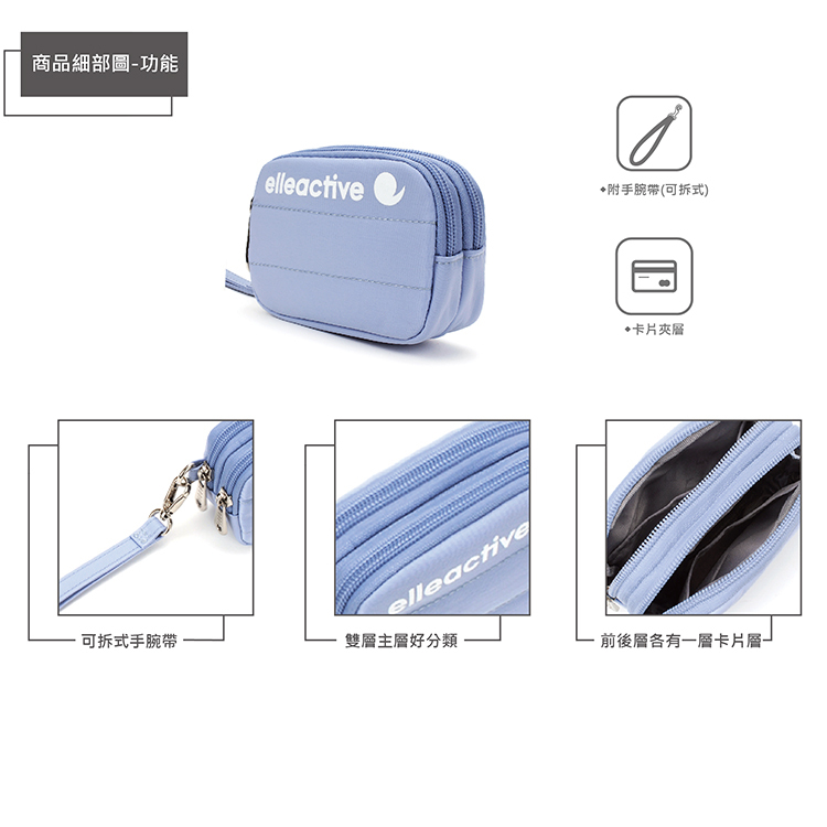 商品品名:【ELLE Active】蓬蓬雲朵系列-雙層零錢包/手腕包-雲霧藍