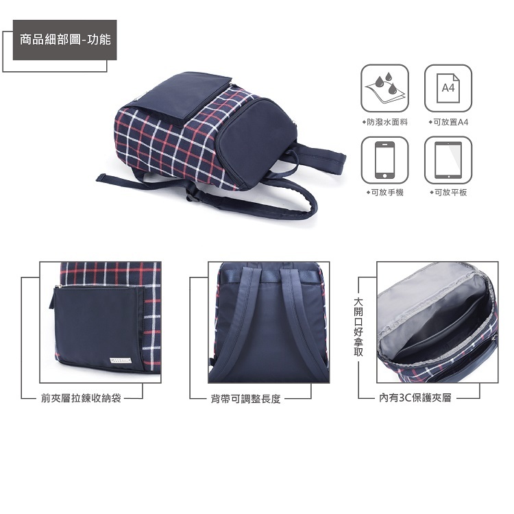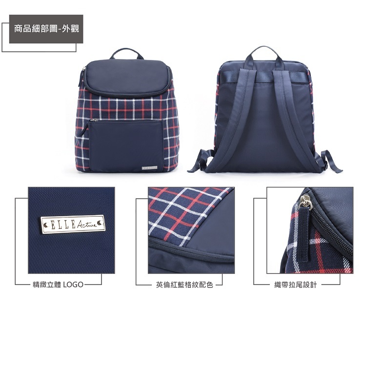 商品品名:【ELLE Active】迷幻生活系列-後背包-中-英倫格紋