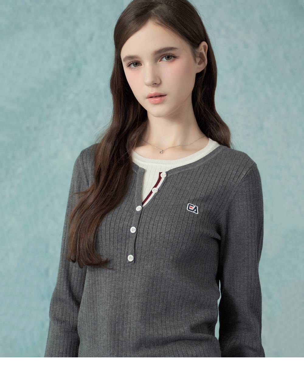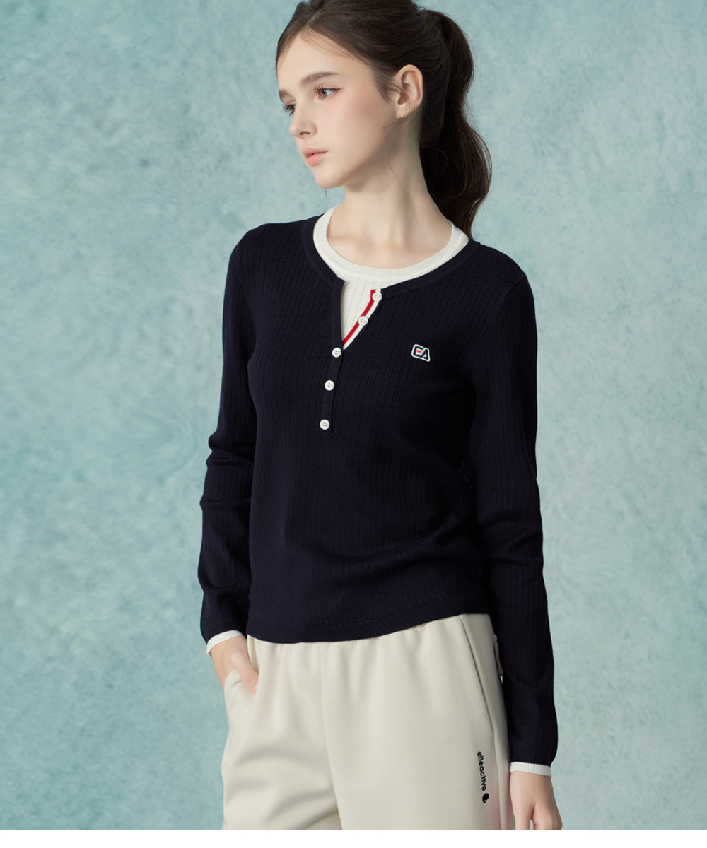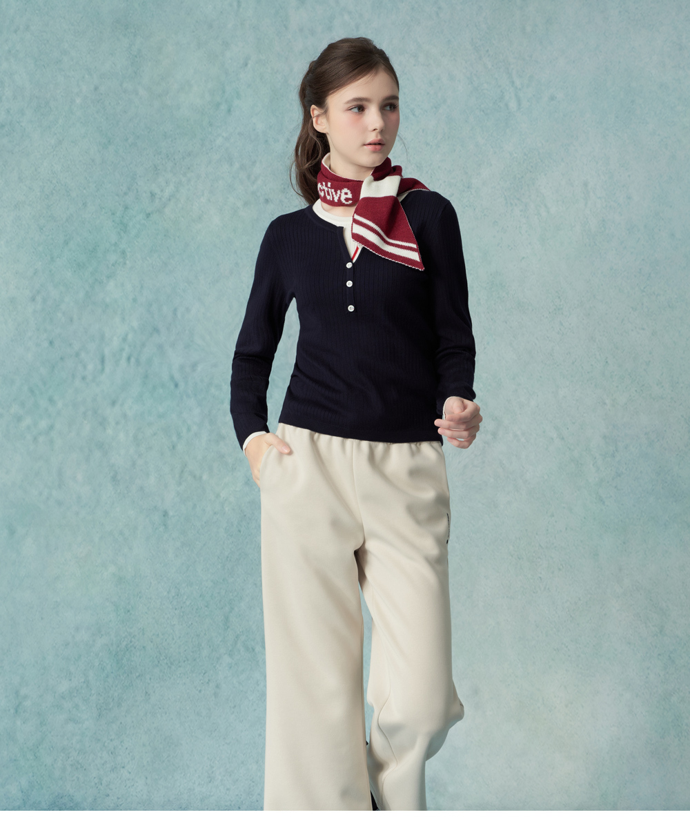 *假兩件針織衫通過領口不同顏色的撞色,營造出自然的 “疊穿效果”,V領位置的紅白藍設計,打造鮮明形象,彰顯品牌獨特品味。