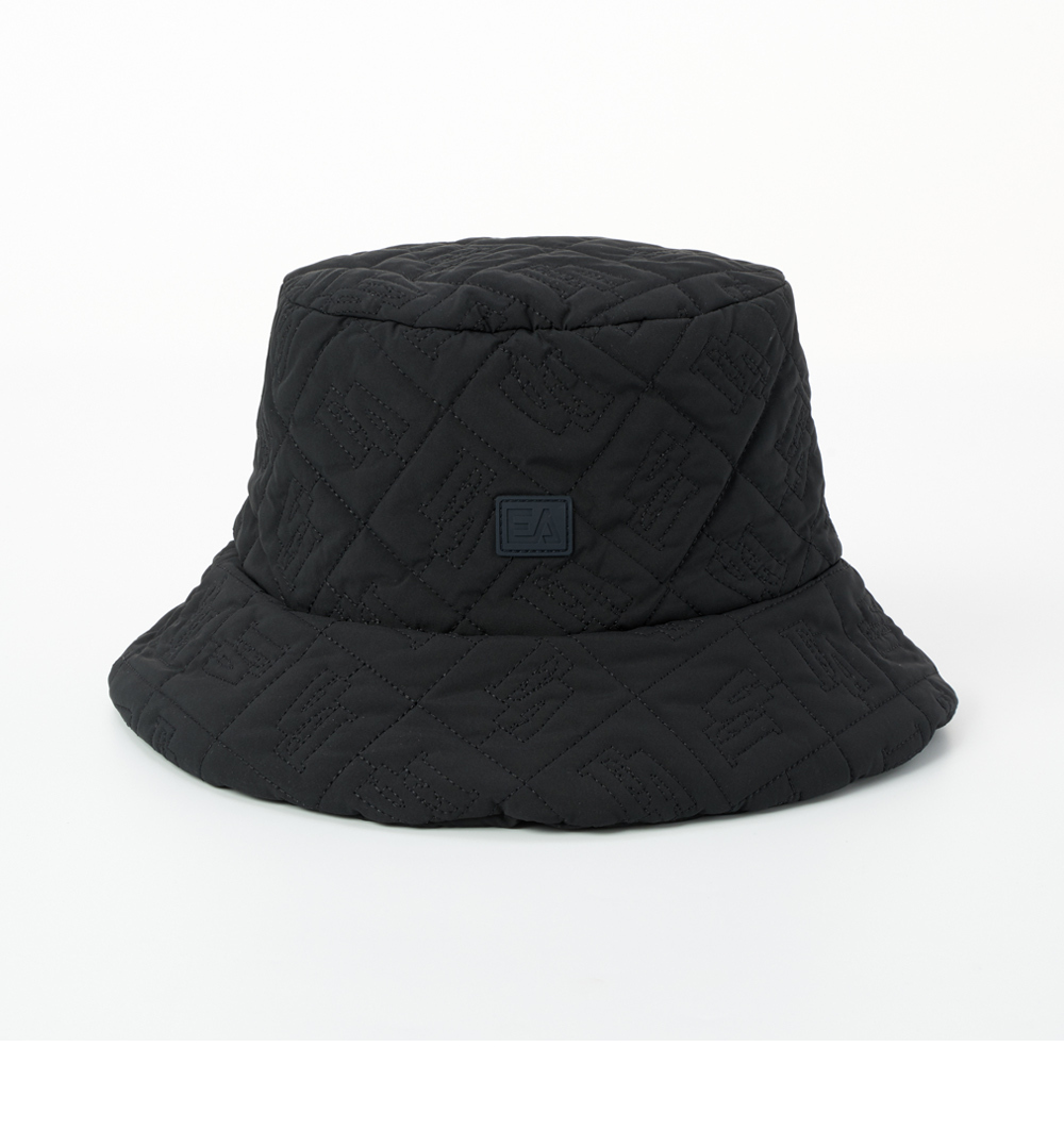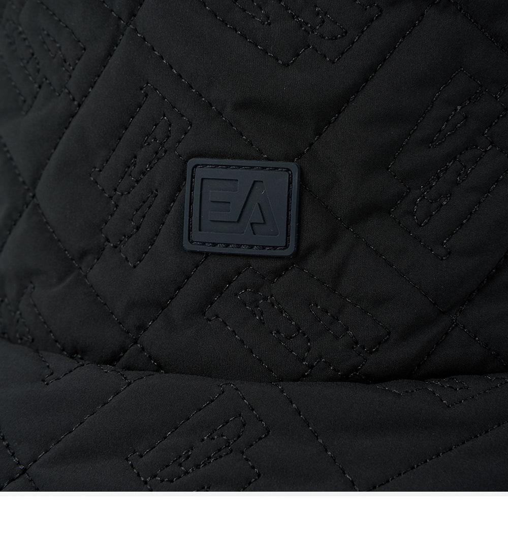 正面有EA經典標誌貼飾,絎縫處理填充材質超輕柔軟,包覆頭部更保暖。