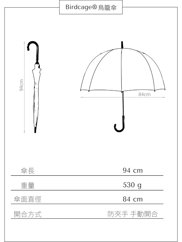 ‧ 傘長約 94cm,重量約 530g