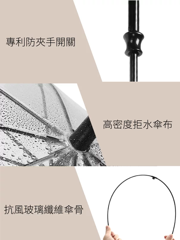 ‧ 玻璃纖維傘骨:極輕、抗強風