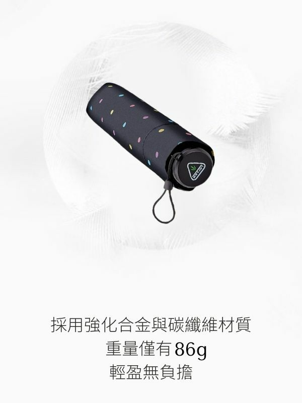 ‧ 3折傘、碳纖維傘骨、獨特可反摺抗風設計