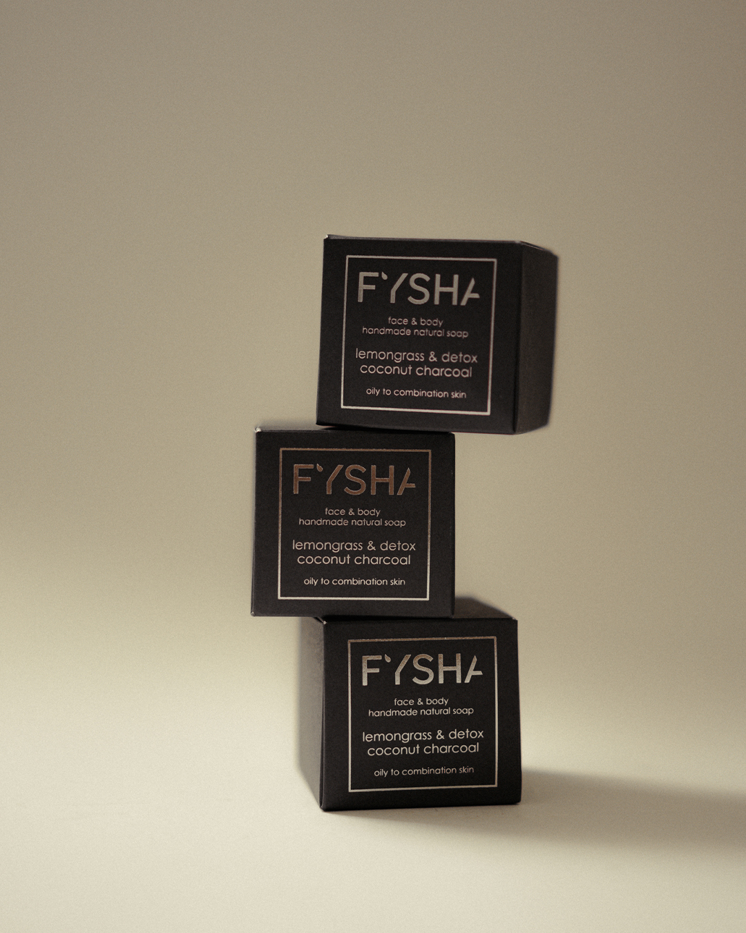 Fysha遵循最傳統的希臘古法製皂技術,保留了高品質的植物甘油,是肌膚最佳的保濕柔軟劑。我們透過耗時的方式徒手將每種配方澆入單獨的模具中,以確保我們的成分到最後一滴都不被浪費。使用特製的方形模具而非一般常見的切割板,使我們的洗面皂沒有任何一塊被浪費的邊角料,極小化給環境的負擔。方形洗顏皂並不只是為了設計,長久使用下來,洗顏皂的形狀會越來越近似鵝卵石一般,不論握在手中或是與肌膚接觸,都能給你極佳觸感的清潔體驗。