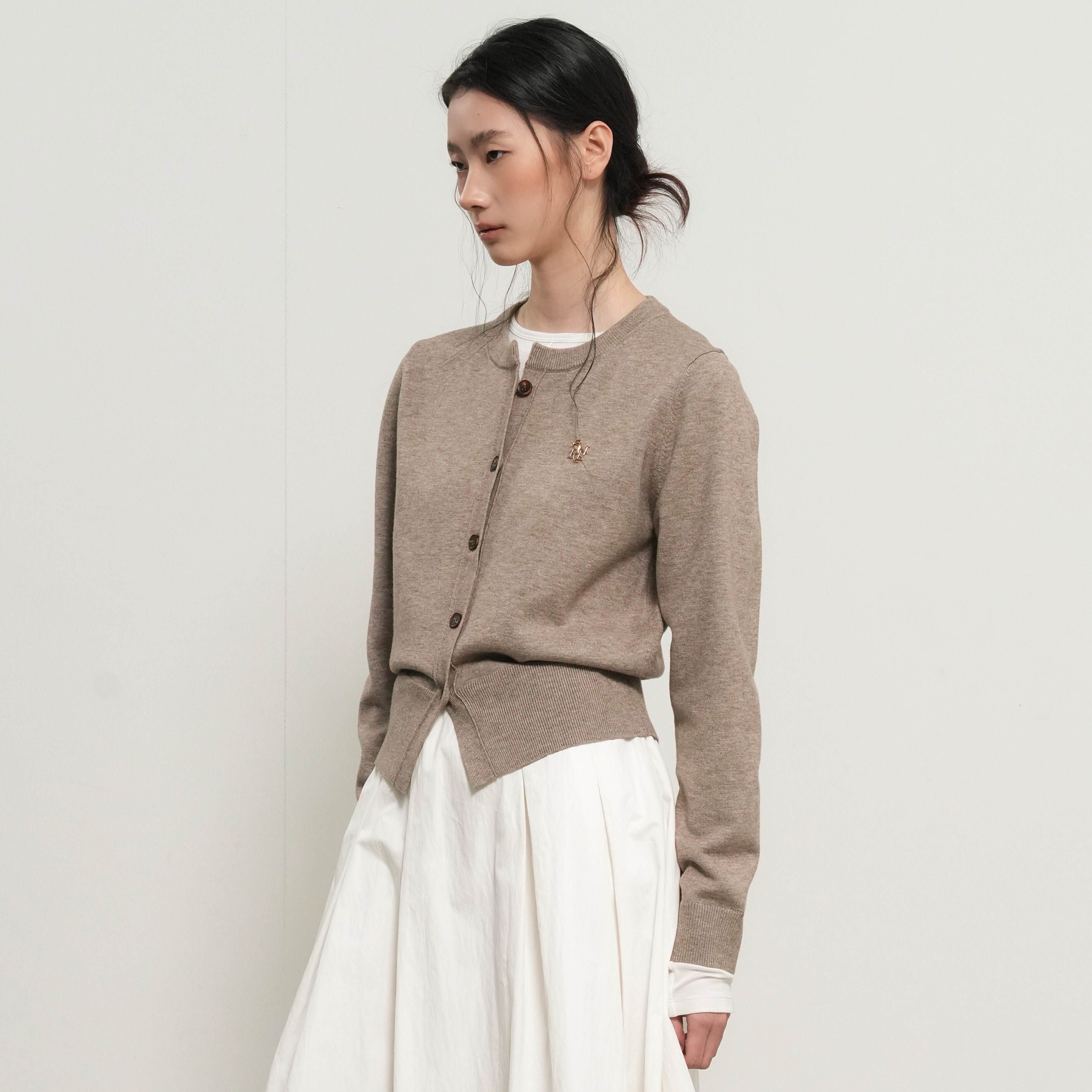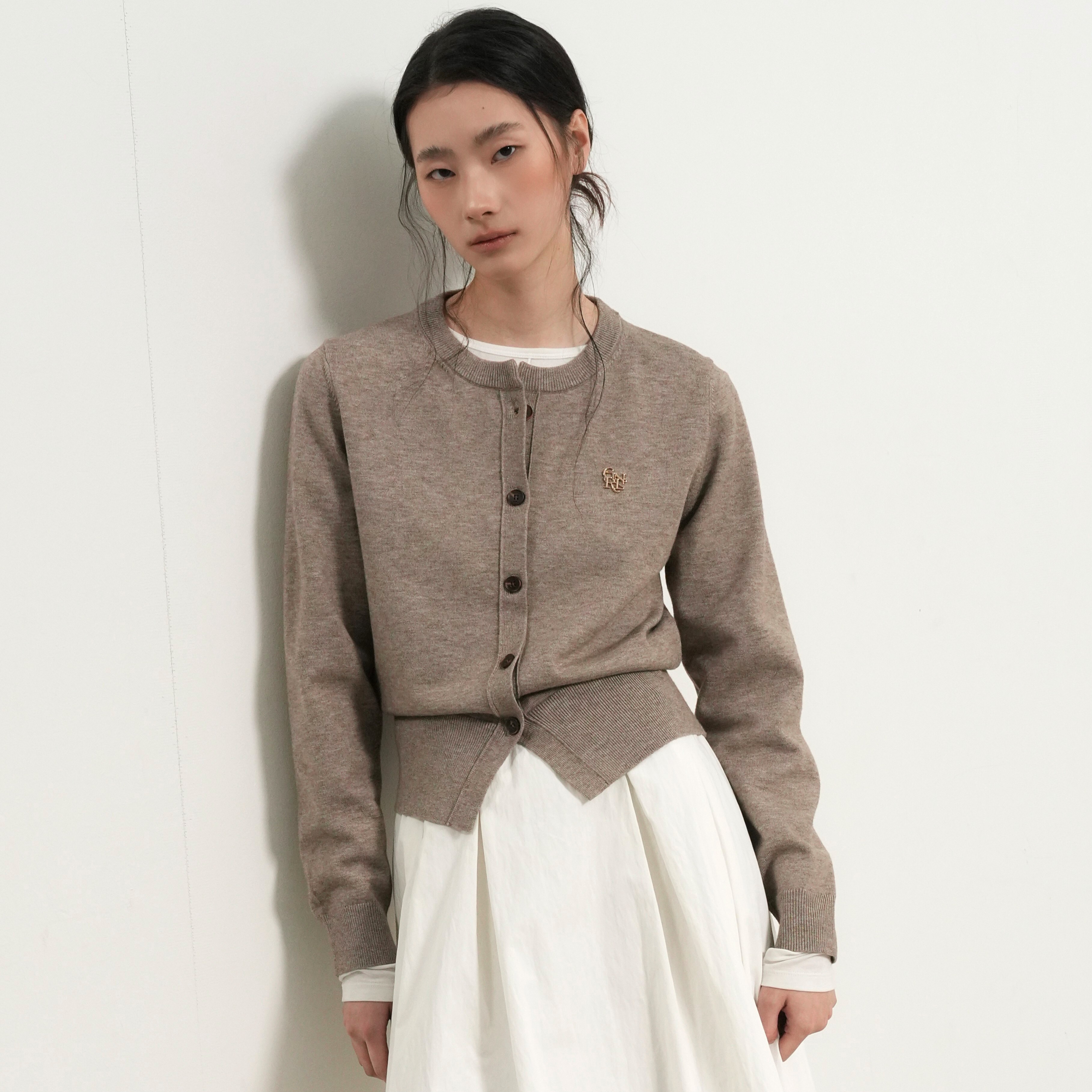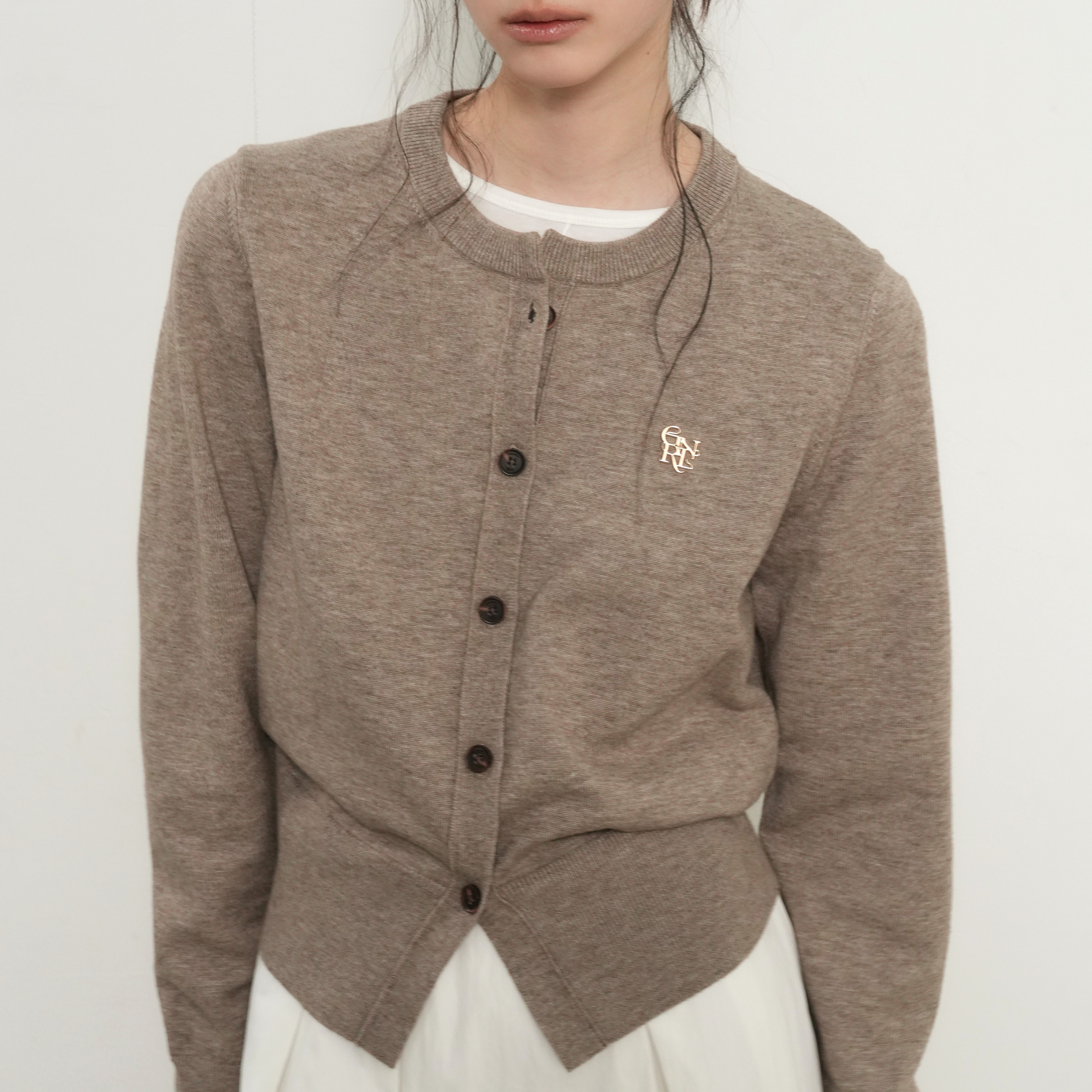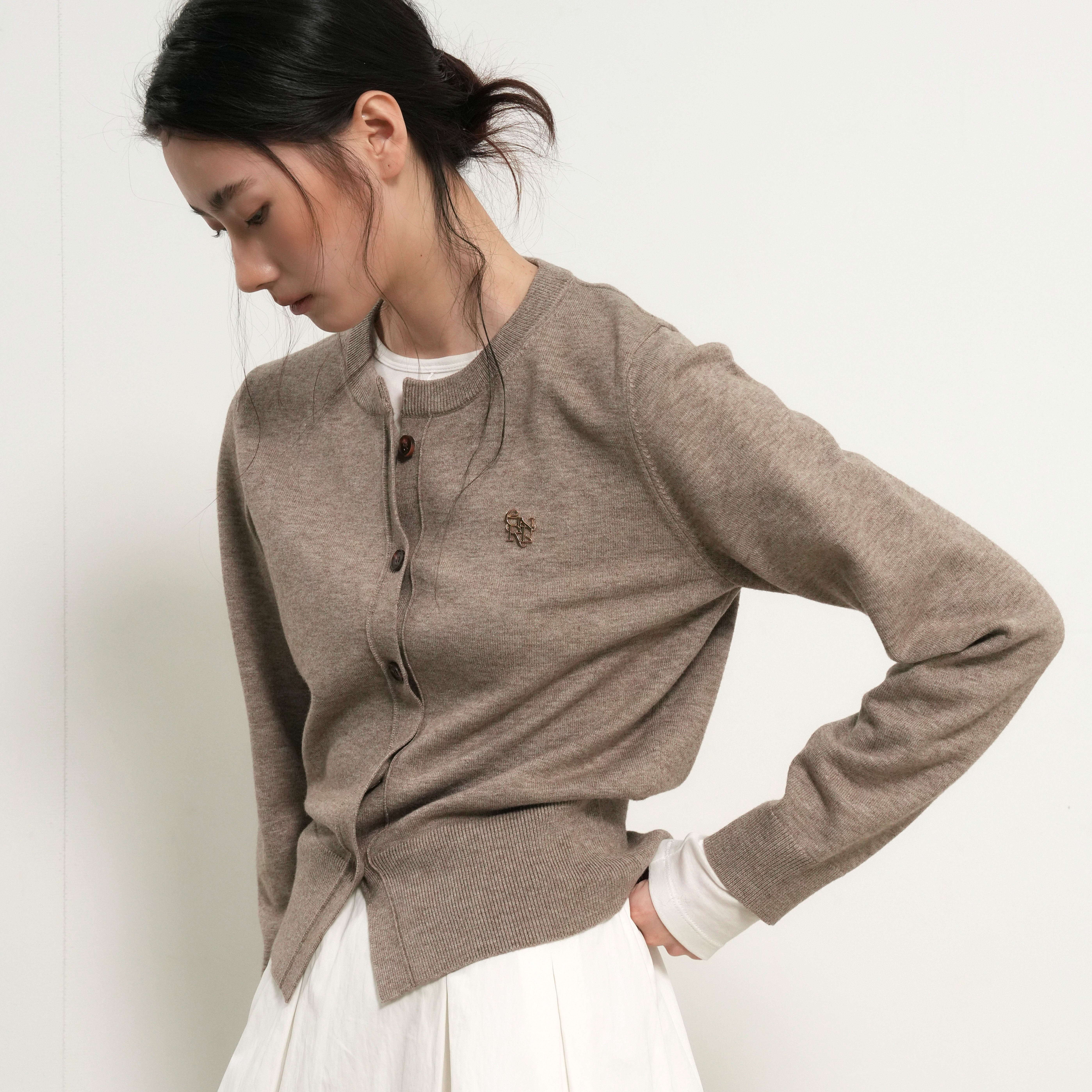 GENERAL IDEA-經典圓領logo針織開襟衫-燕麥