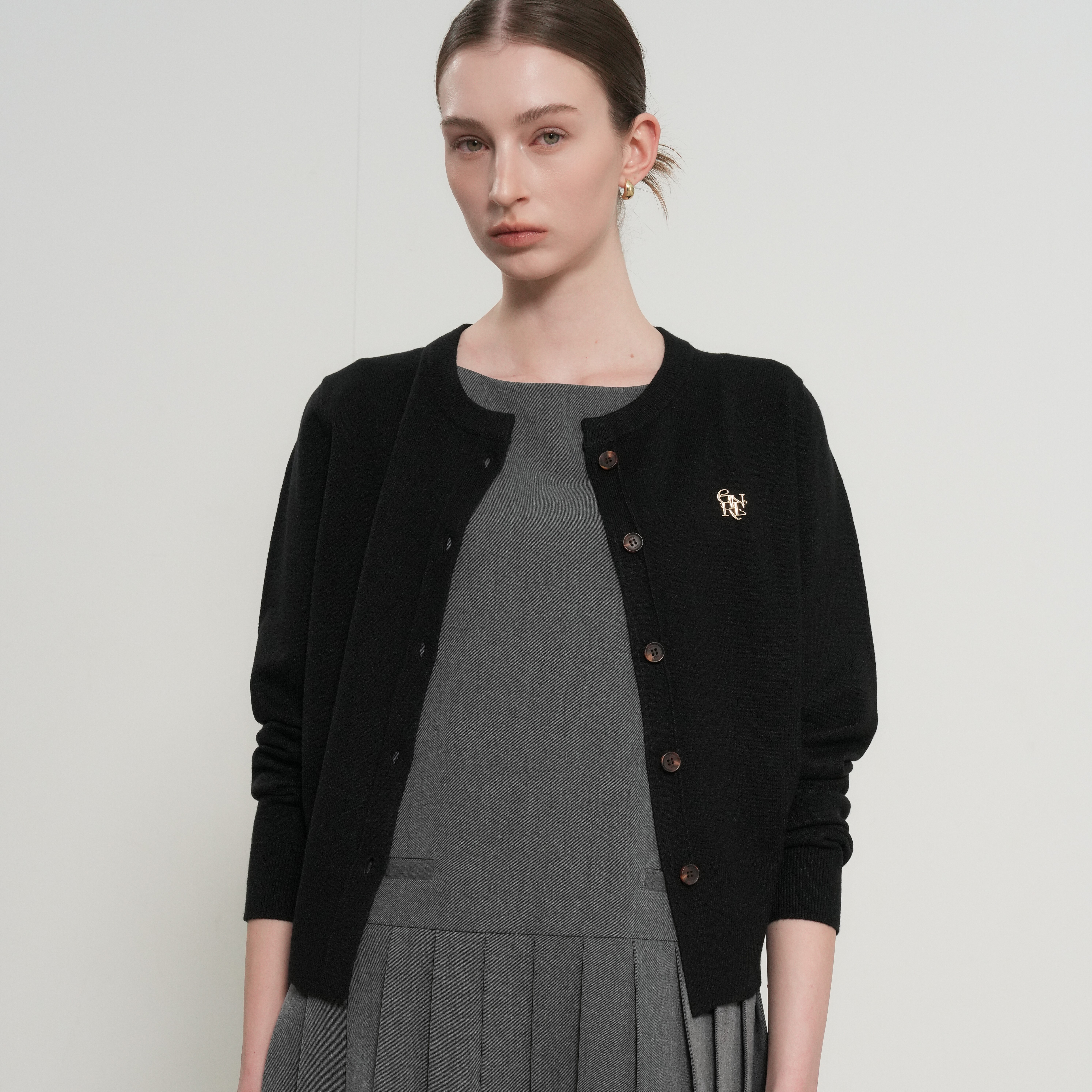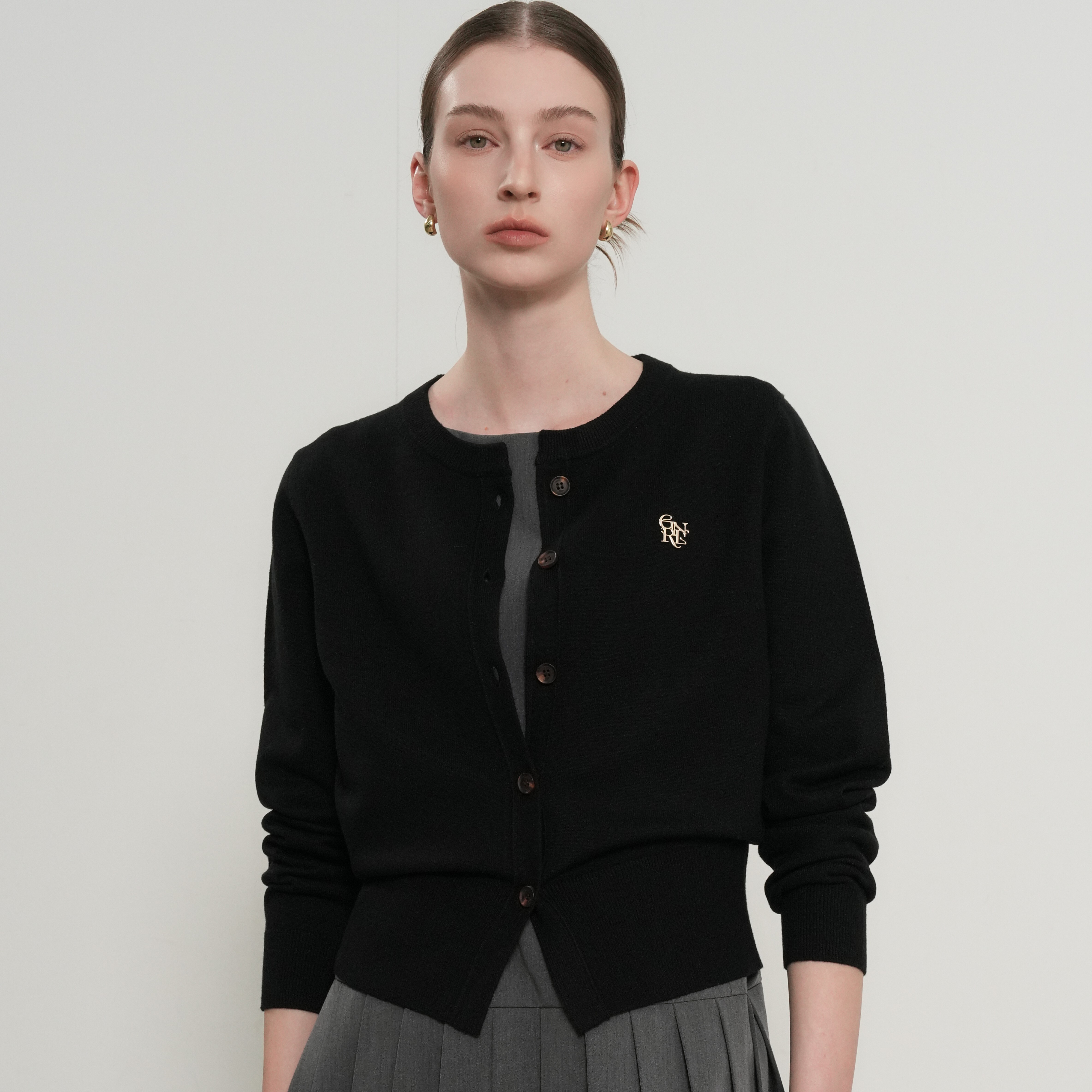 GENERAL IDEA-經典圓領logo針織開襟衫-黑