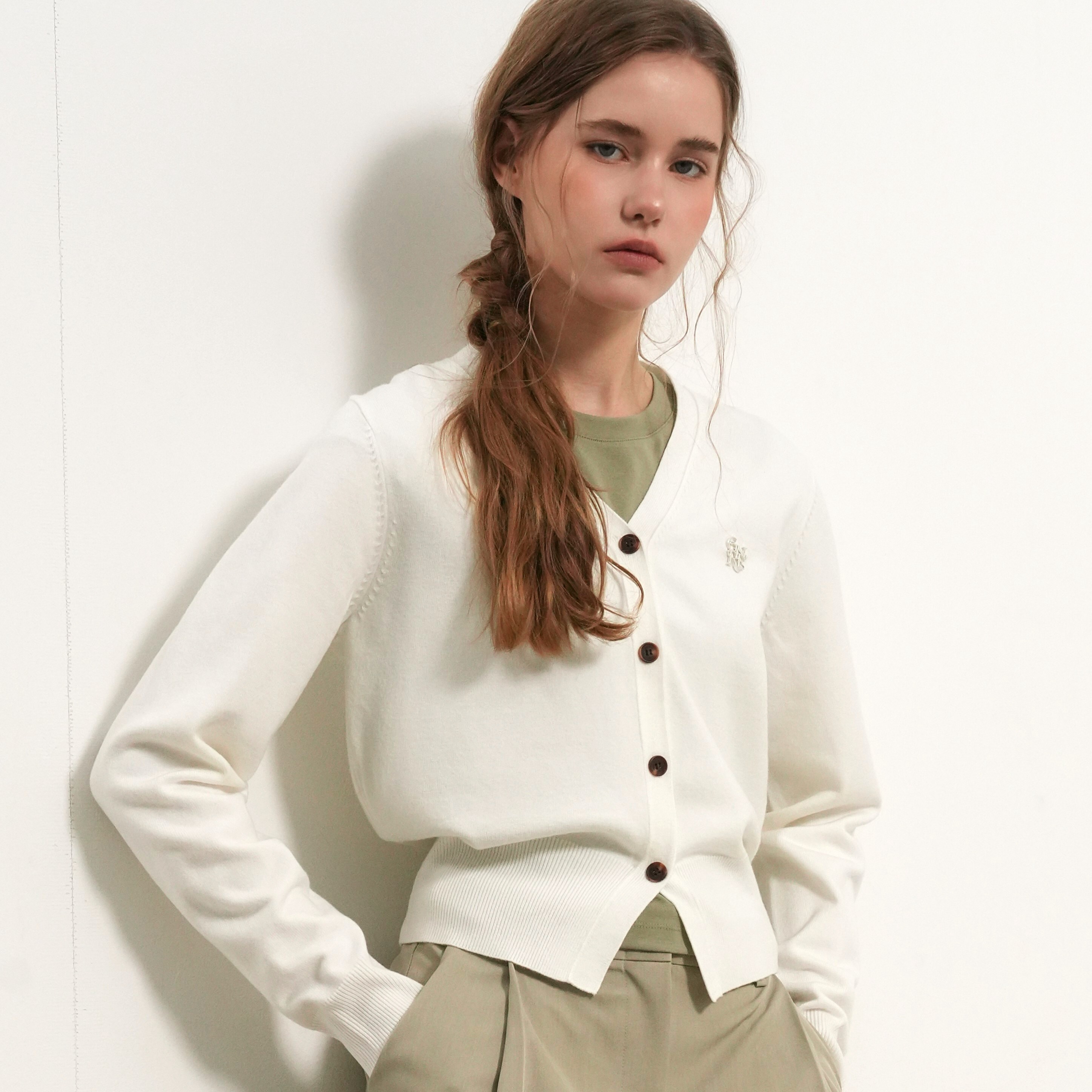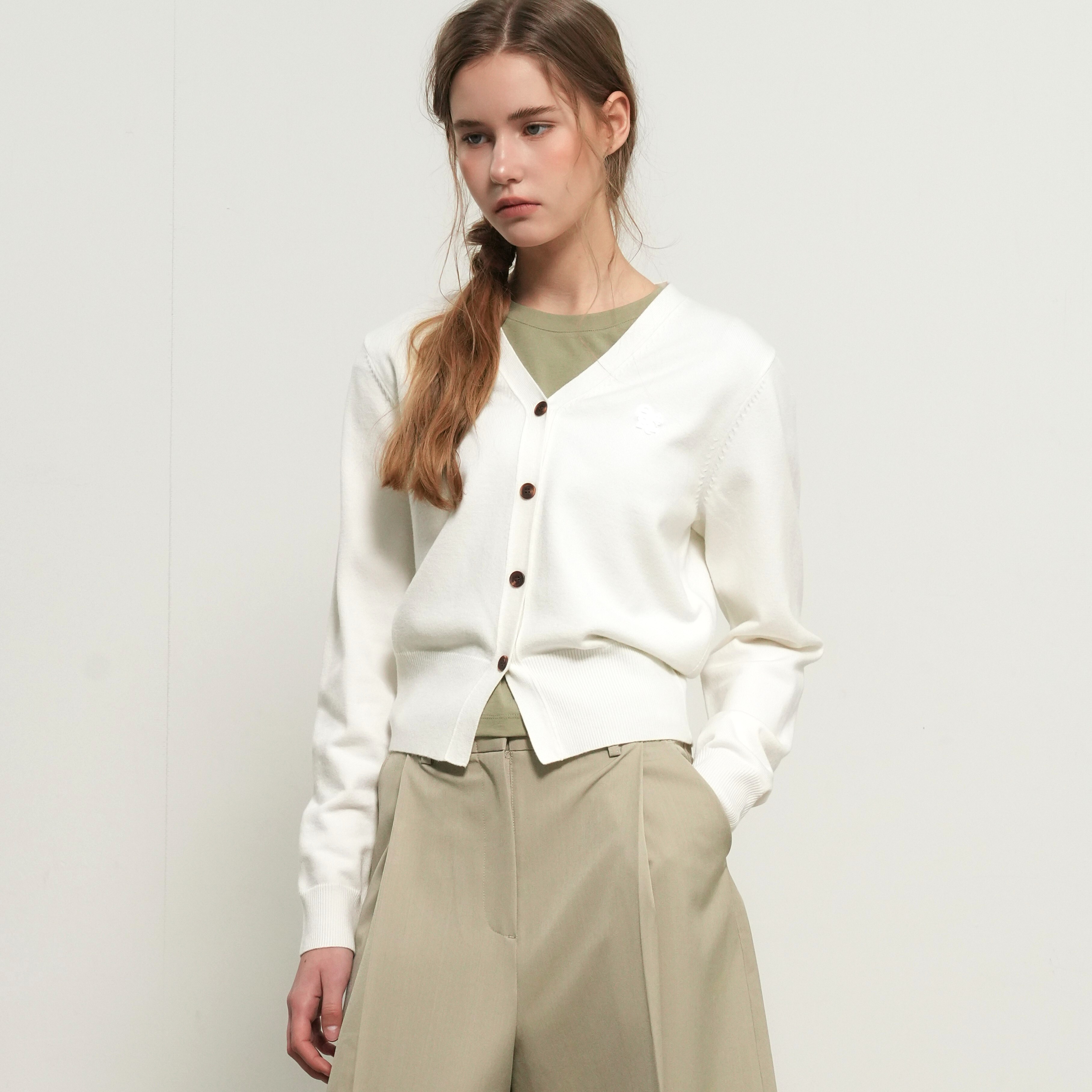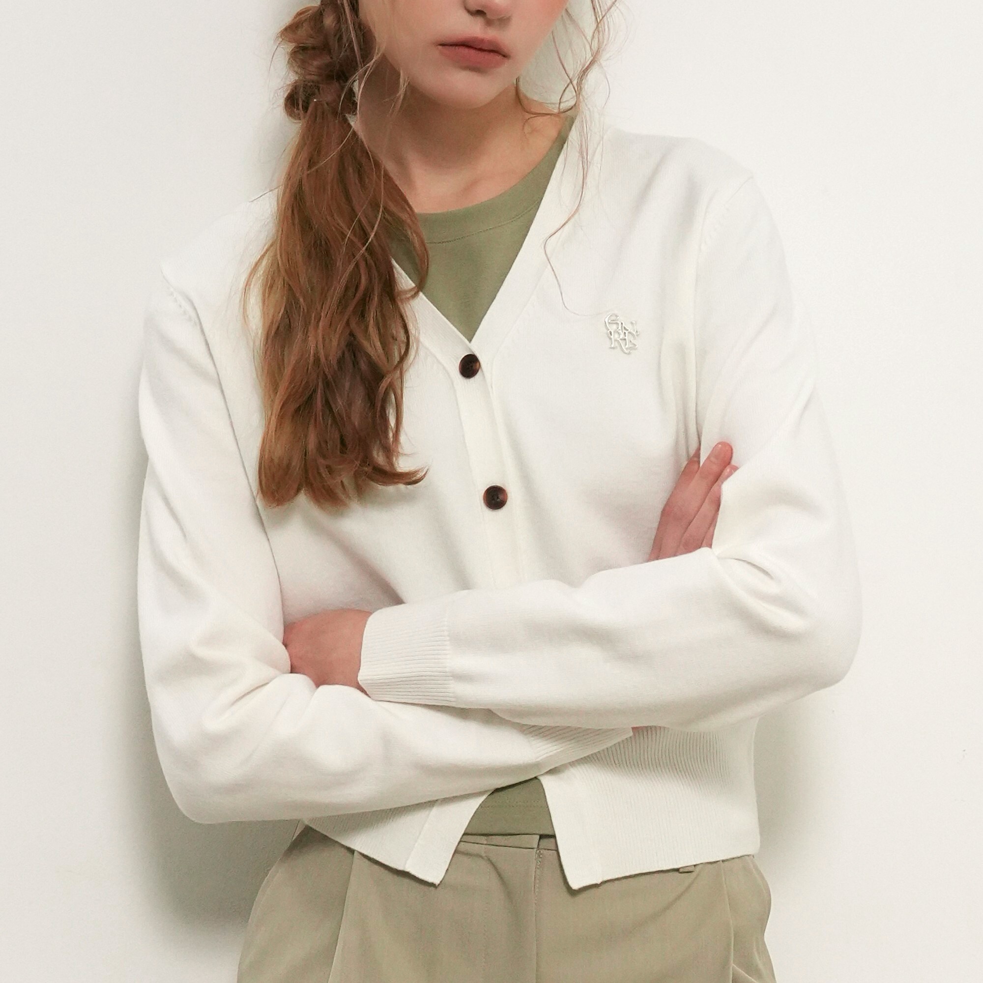 GENERAL IDEA-經典V領logo針織開襟衫-白
