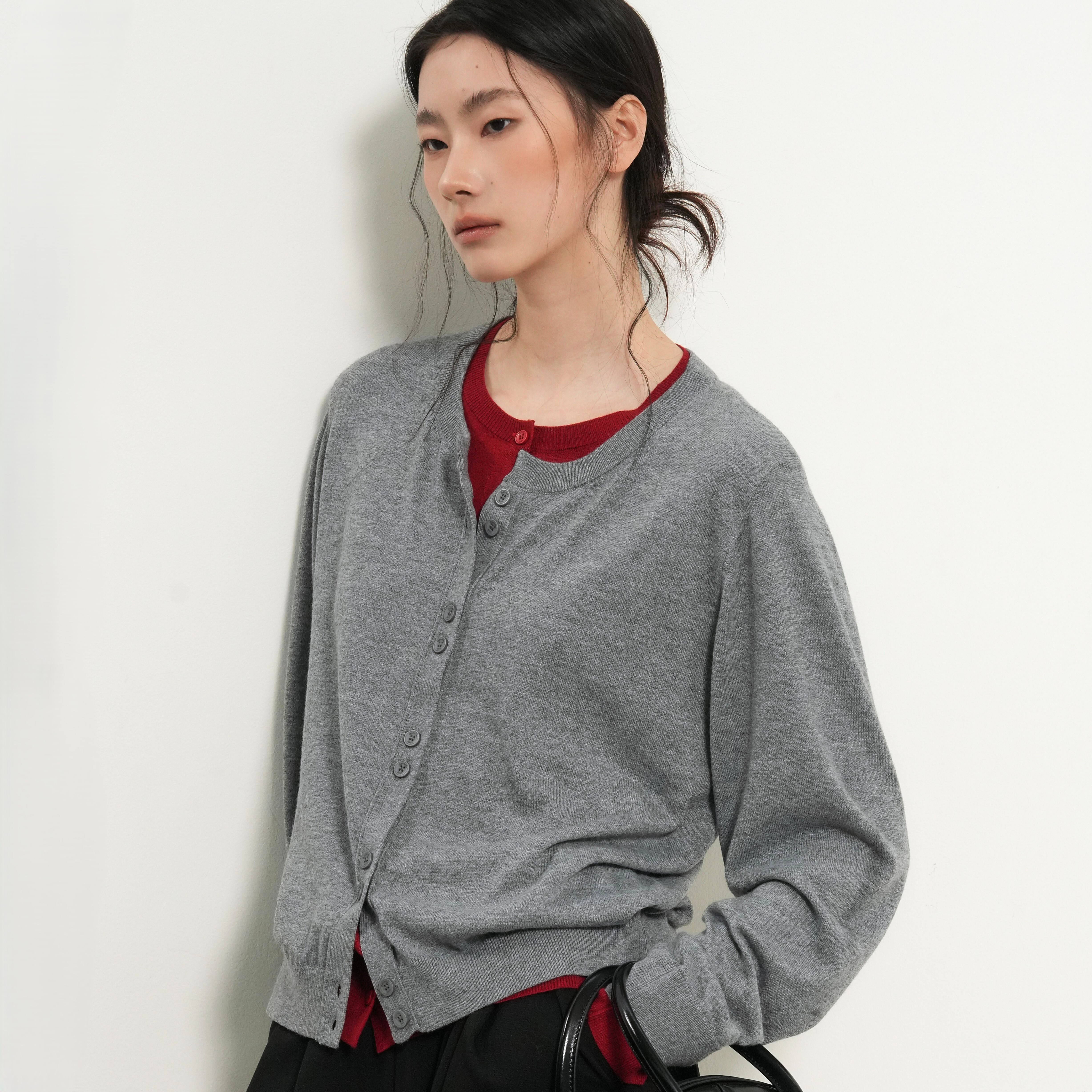.內外層鈕扣交叉設計增添低調時髦感