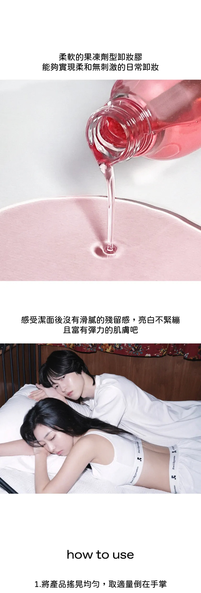 精油和凝膠合而為一的無刺激潔膚產品,含有番石柳果實提取物,給予肌膚深層飽滿水分感
