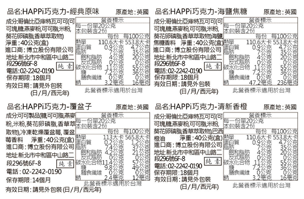 口味:經典、橙香、海鹽焦糖、覆盆子