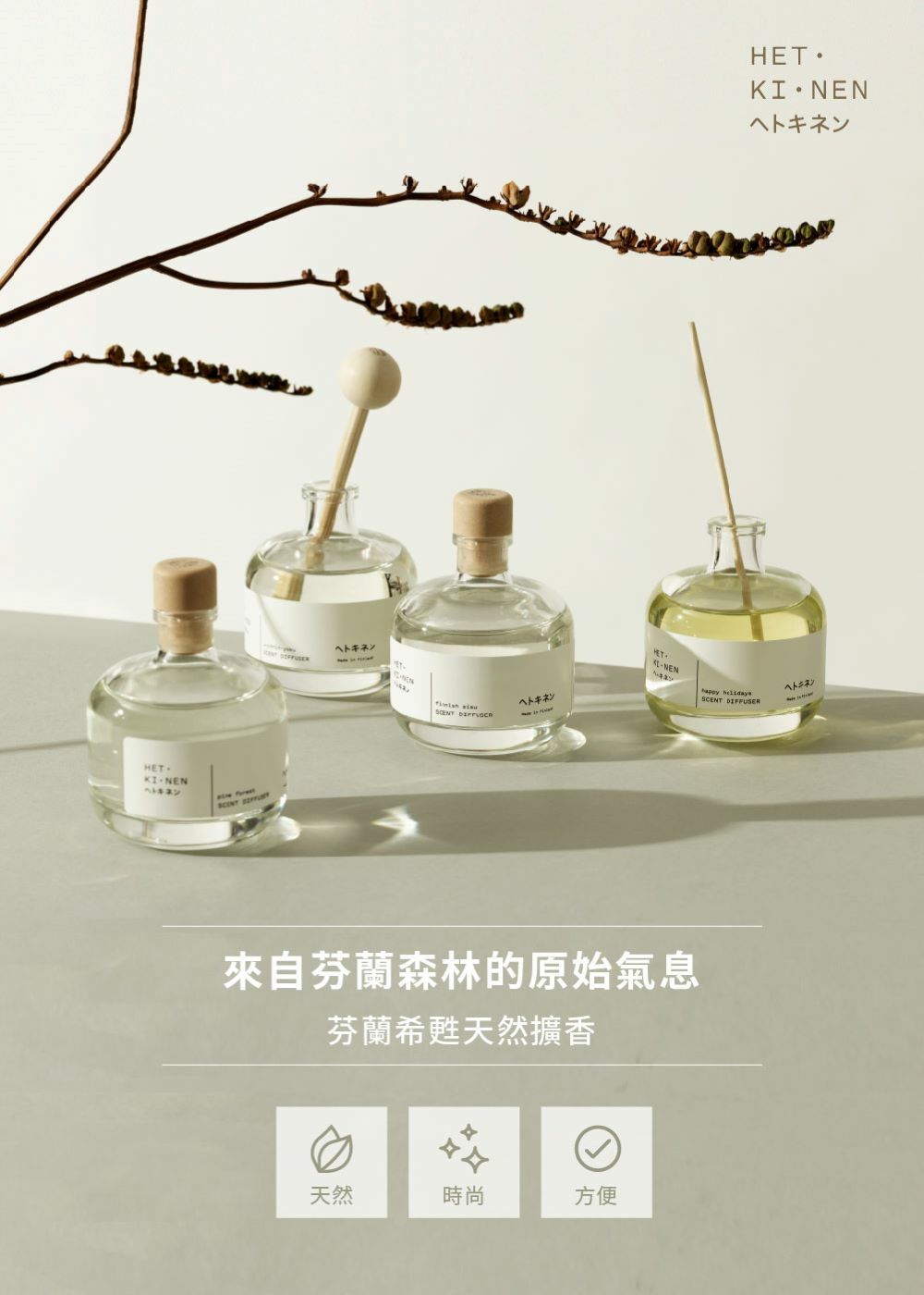 Hetkinen,在芬蘭語中意為 “ wait a minute ”,隨著都市生活腳步越來越快,適時對自己說一句 “ wait a minute ”。當你停下腳步,呼吸著森林香氛帶來的片刻美好,那個當下就是屬於你自己的 Hetkinen。