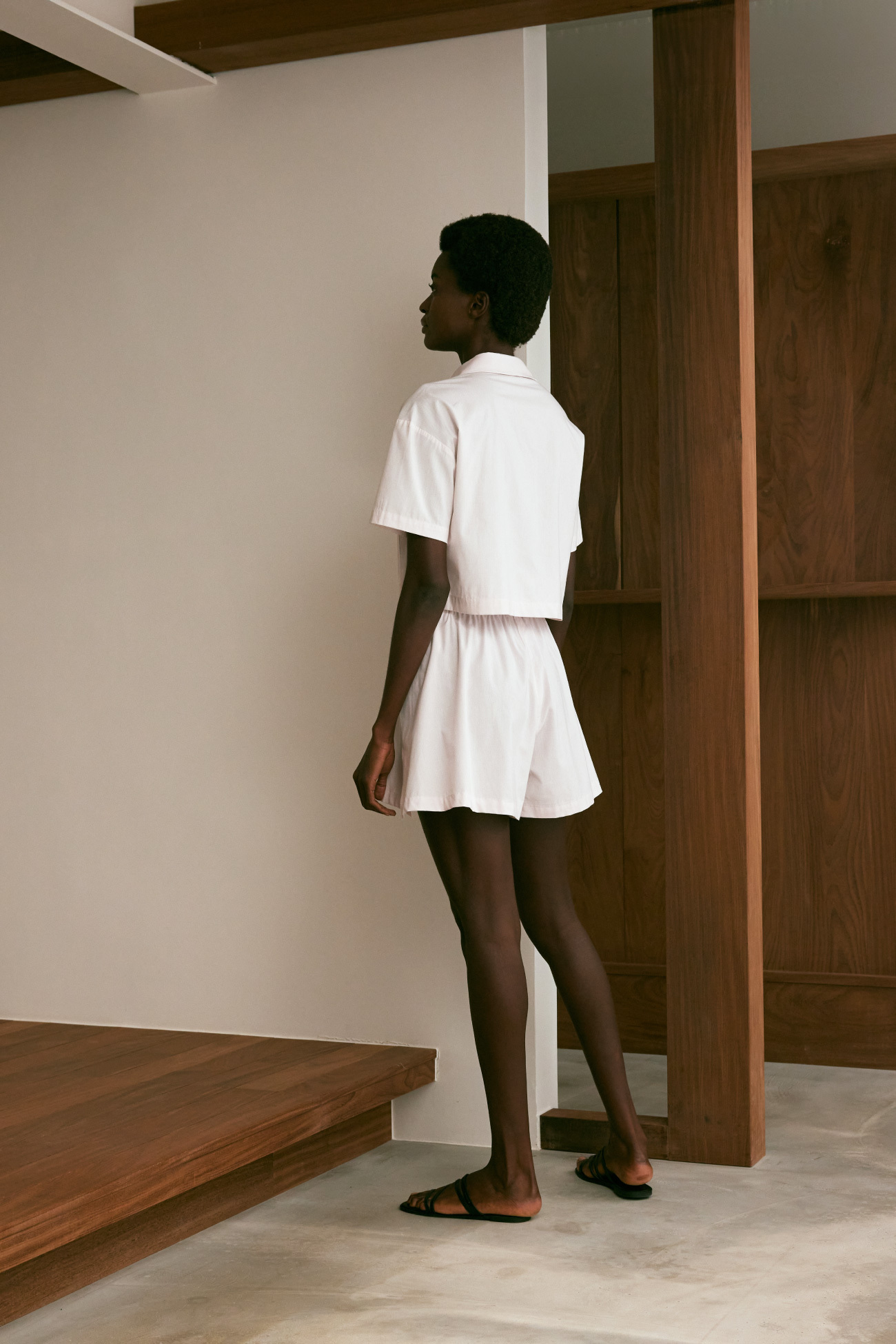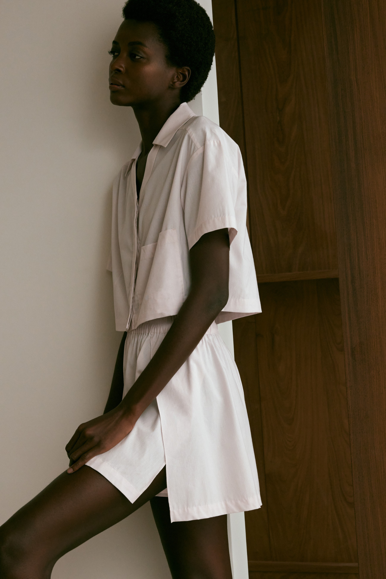寬鬆版型並採用側邊高衩設計,提供舒適活動空間,側邊布料的重疊份,能夠兼具穿著安全感,成套搭配同系列襯衫,輕鬆展現舒適自在。