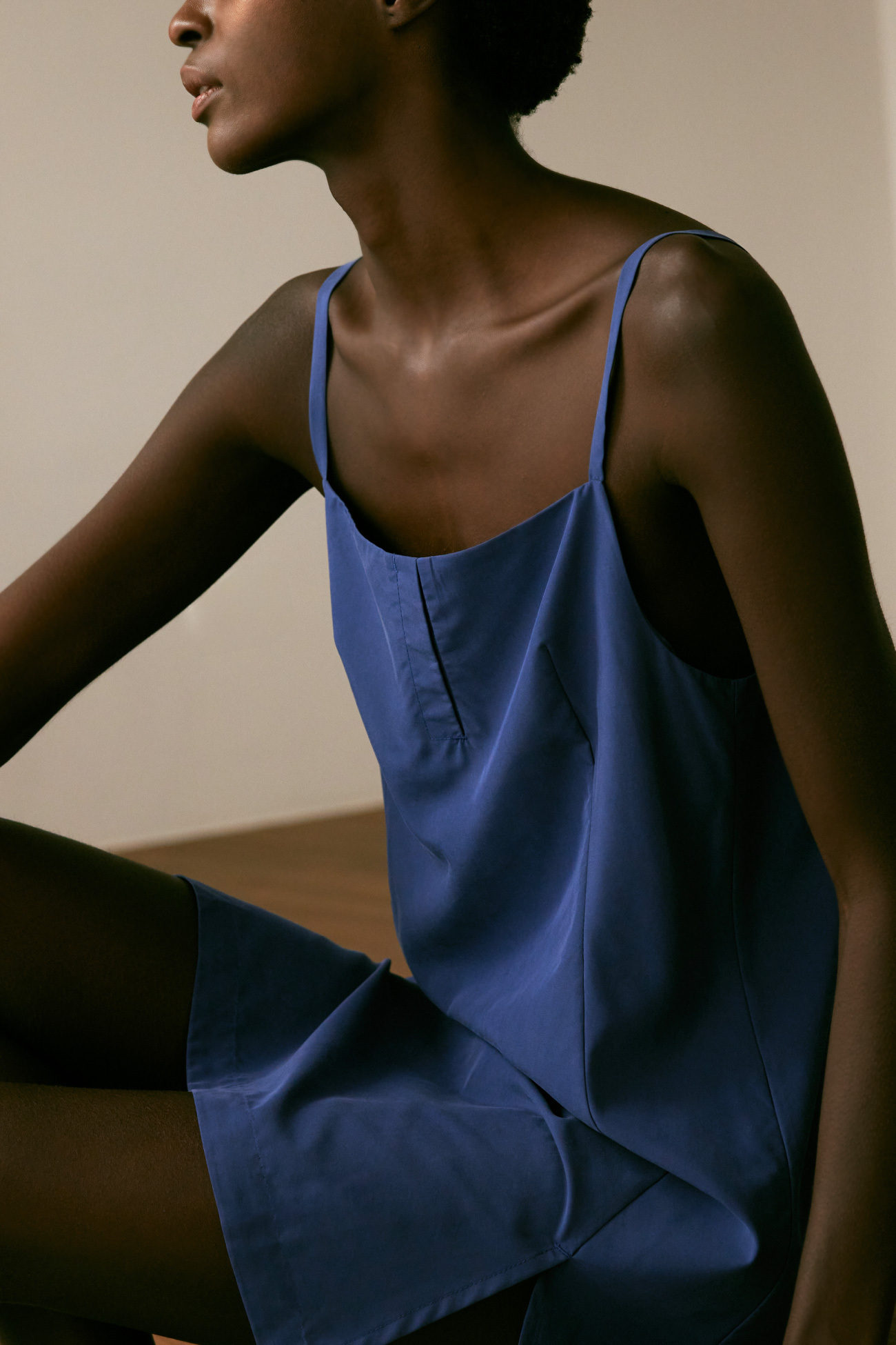細肩帶挖背設計,帶出整體輕鬆氛圍,背部一字帶增添細節,無論是居家放鬆還是外出旅遊,穿出簡約俐落的態度。