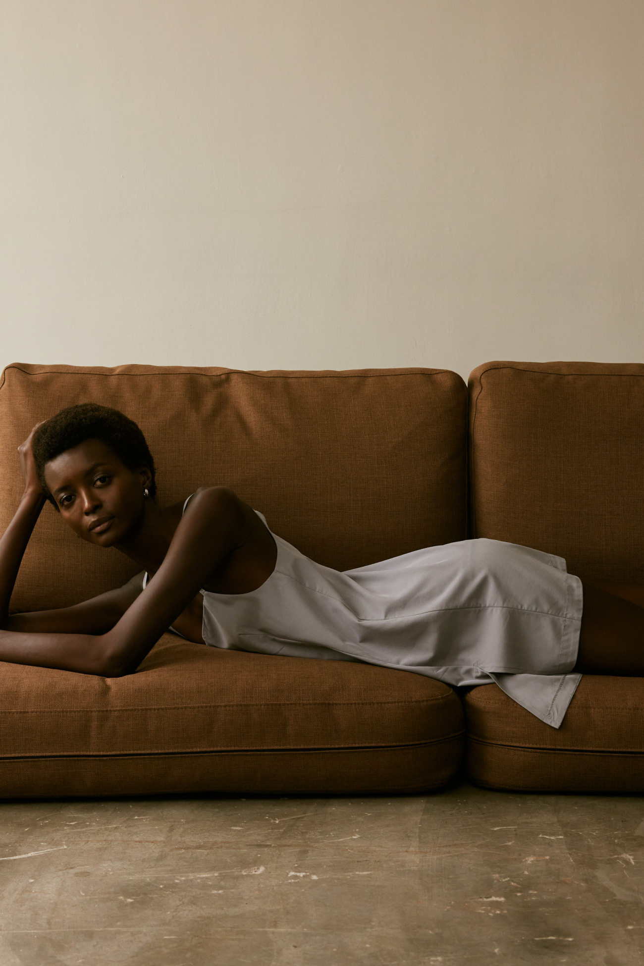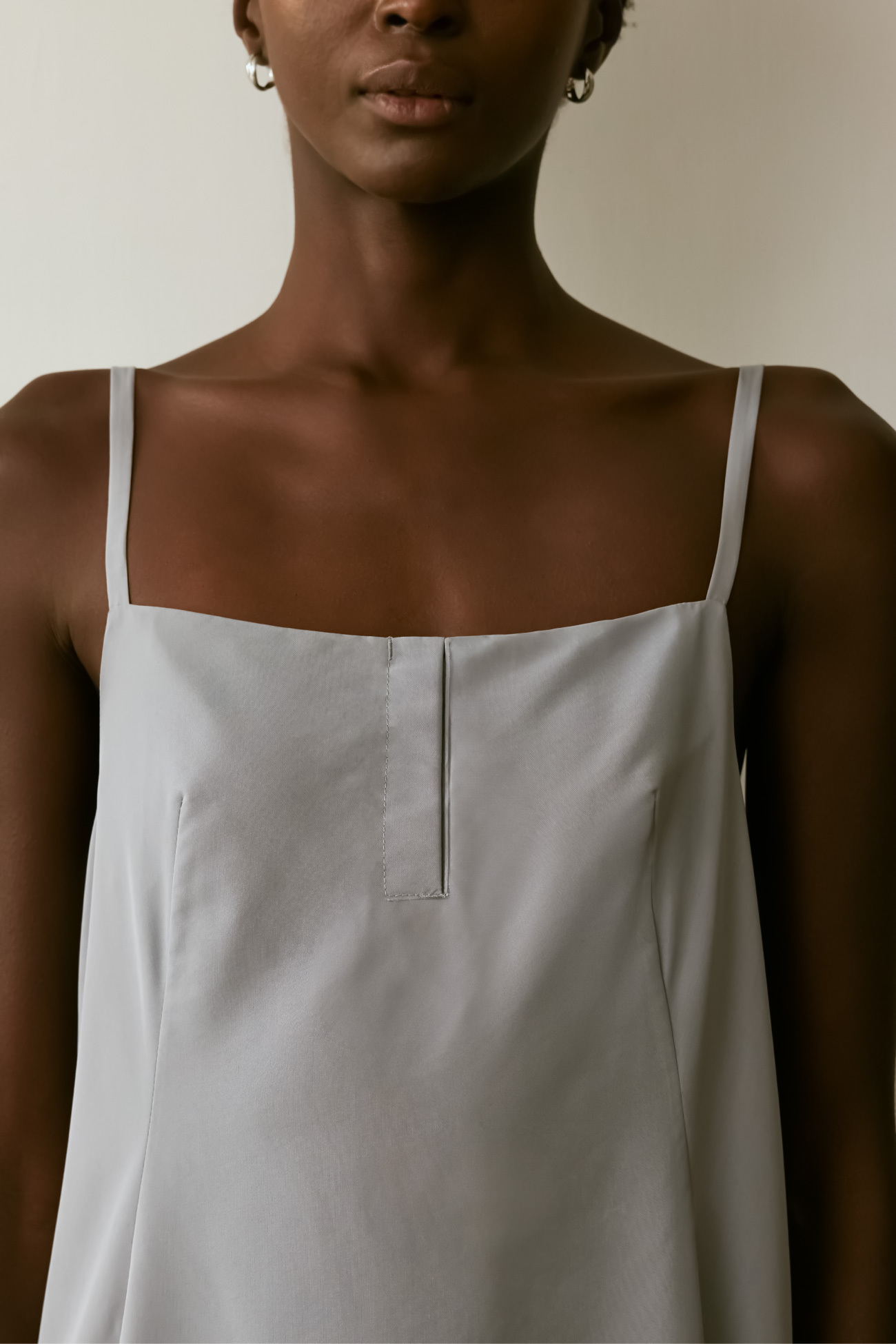 細肩帶挖背設計,帶出整體輕鬆氛圍,背部一字帶增添細節,無論是居家放鬆還是外出旅遊,穿出簡約俐落的態度。