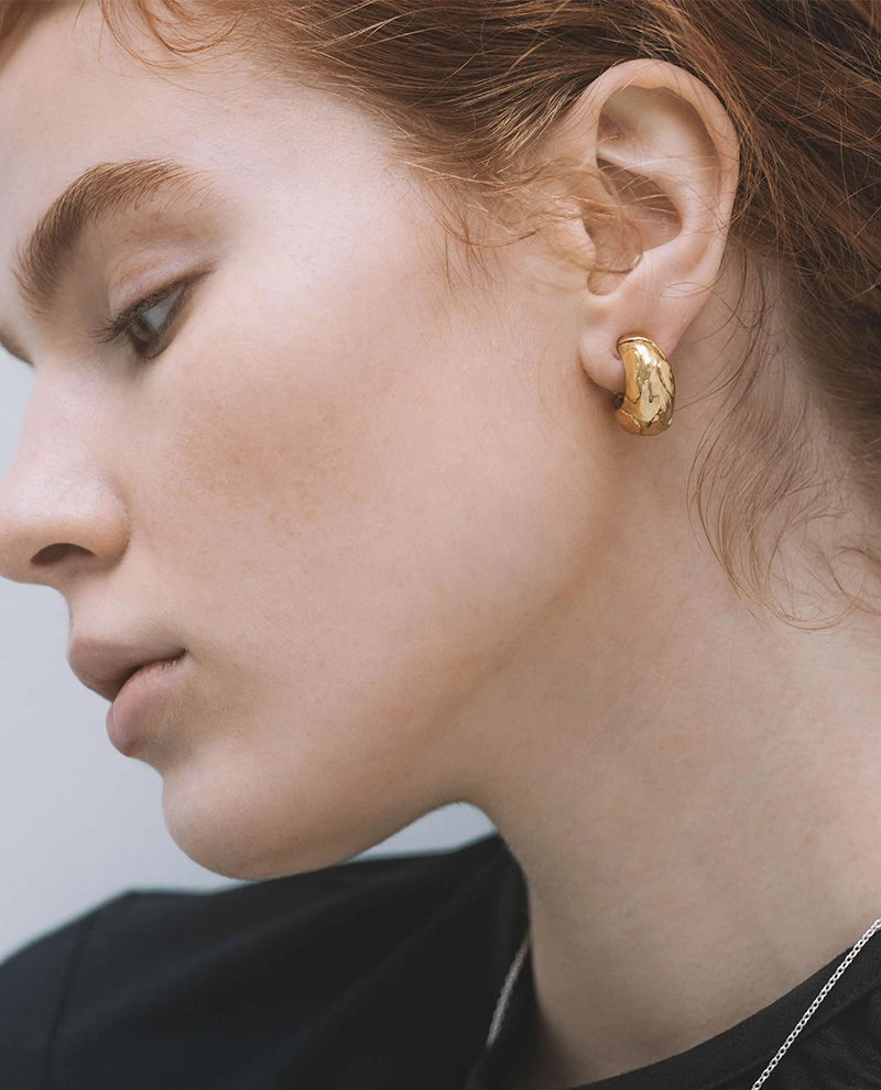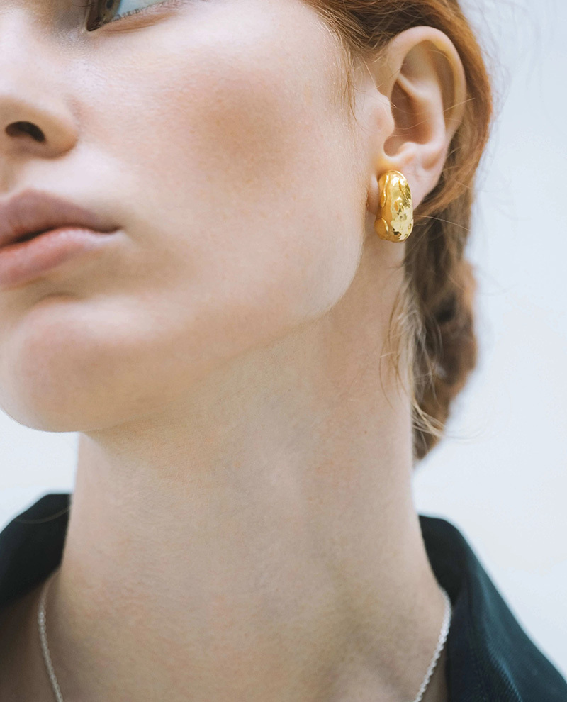 表現出土壤的氛圍。耳夾採用環狀設計,緊密適合並舒適貼合肌膚,可完美呈現極簡風格。