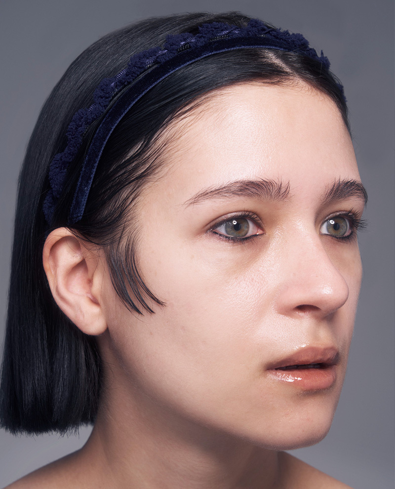 注重髮箍的"薄度",使其緊密貼合頭部的形狀,打造出簡潔的臉部輪廓。