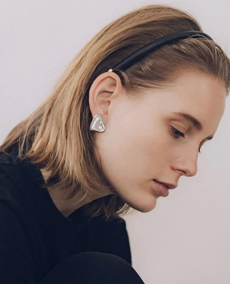 此款耳夾以歪斜的心形輪廓呈現,就像是藝術品一樣充滿存在感。