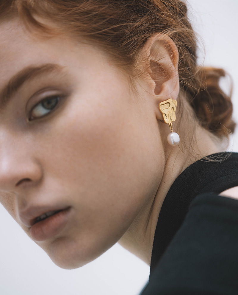 在耳夾尖端點綴的天然巴洛克珍珠,營造出豐富的動感。