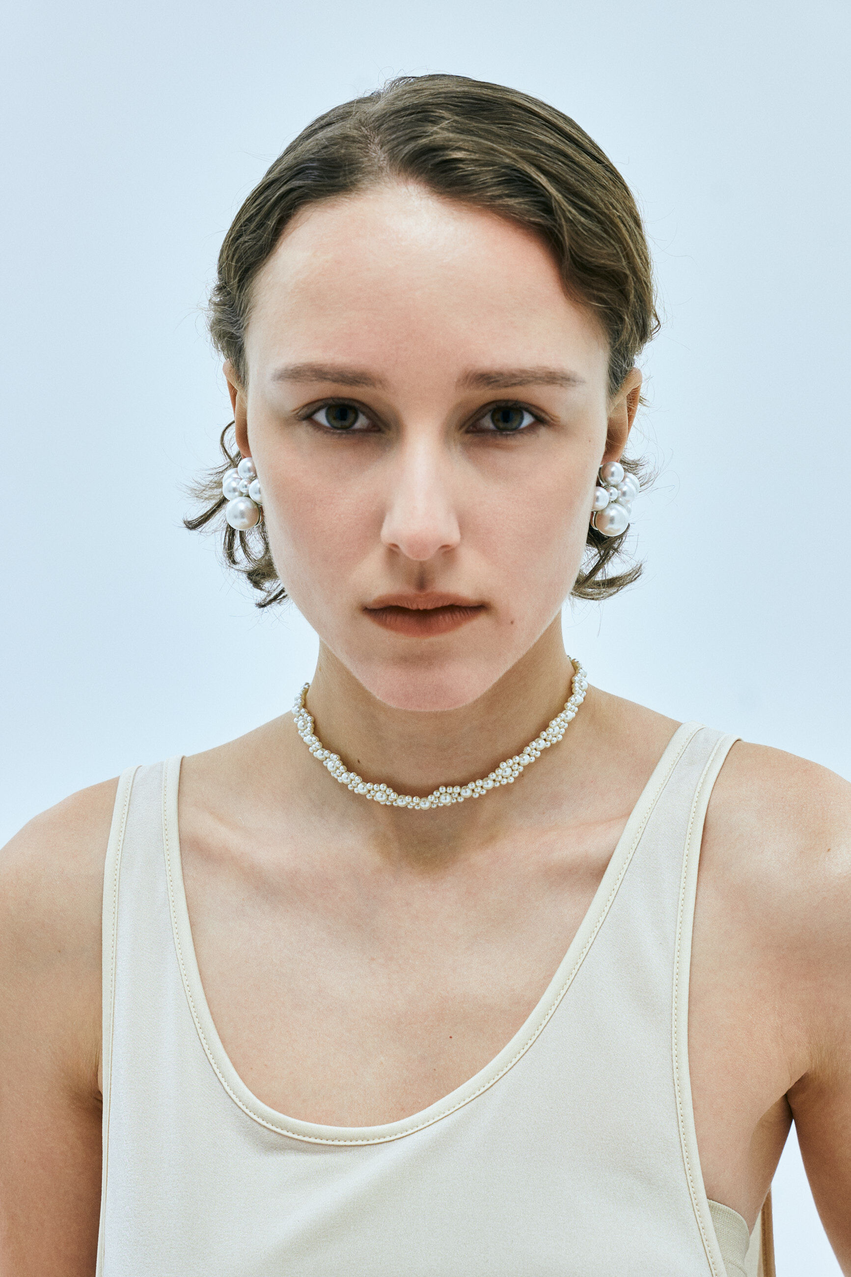 幾何且富有節奏感的造型皆為手工製作,適度的存在感成為頸間亮點,襯托膚色更加動人。
