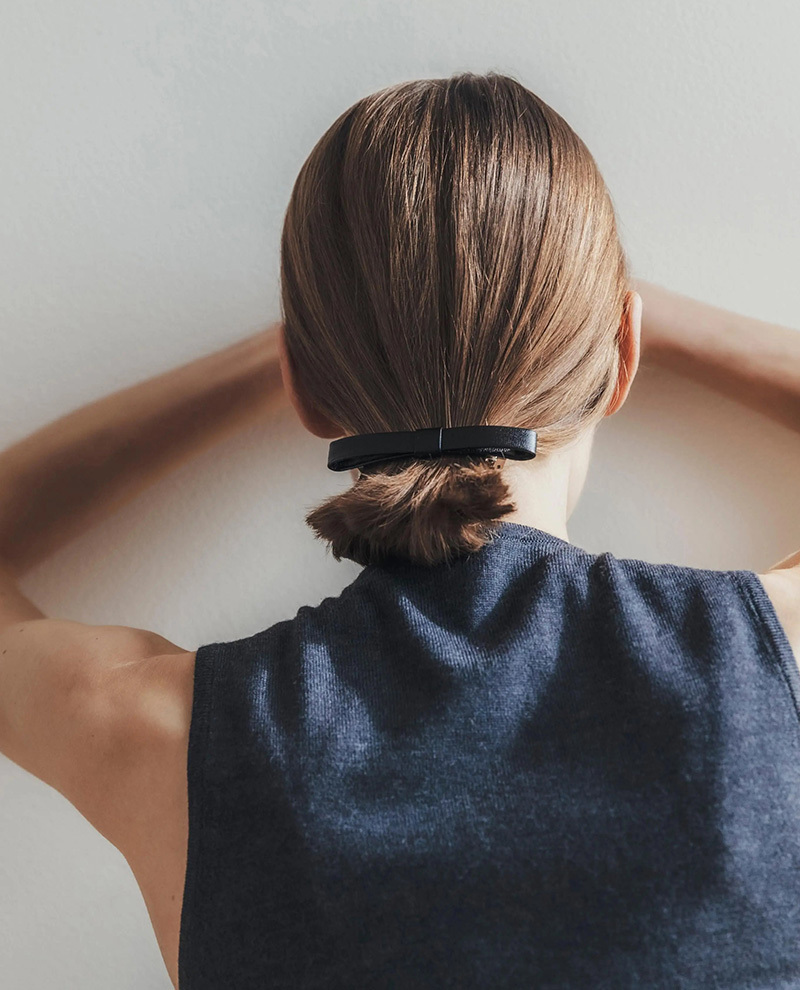 自然不做作的髮型,專注於朝著樂譜前進的女性背影為靈感設計的"氣質蝴蝶結髮夾"。