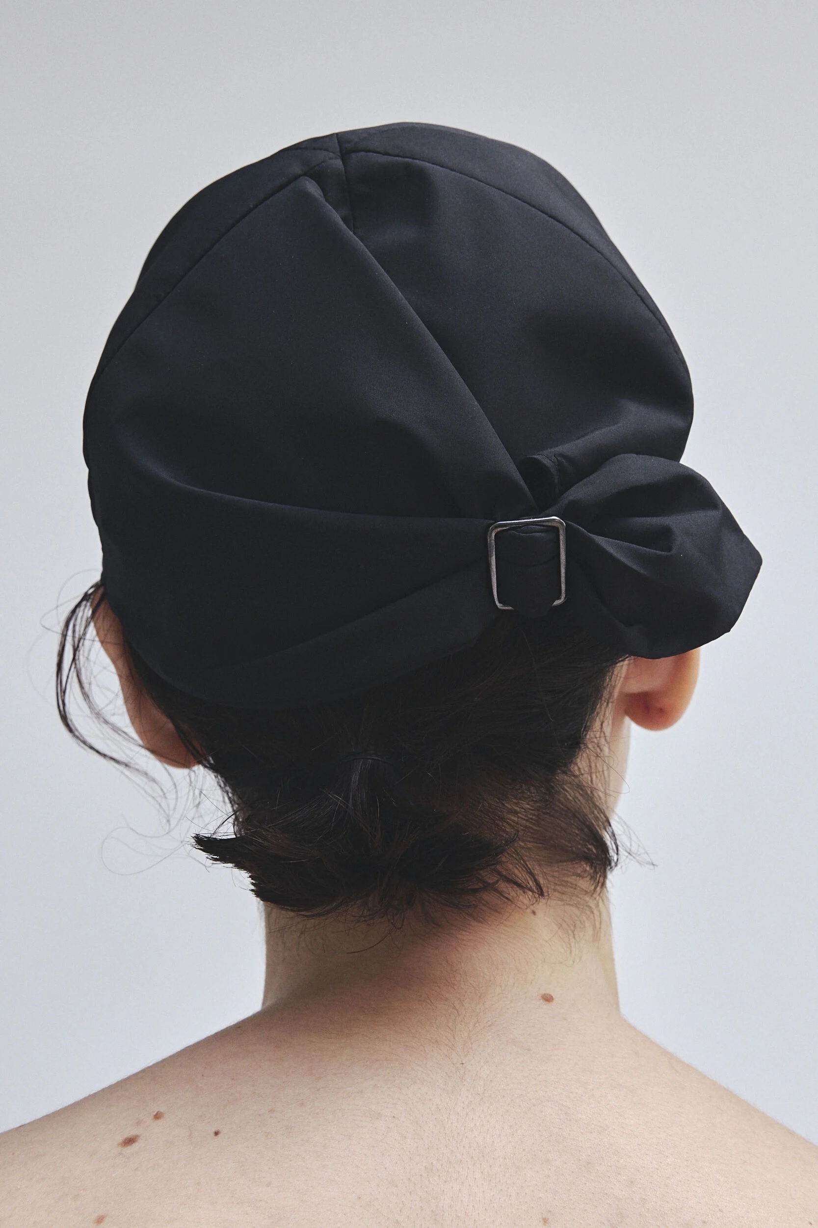 後方調節尺寸的部分特別作成絲巾打在一起的模樣,充滿時尚優雅的設計。