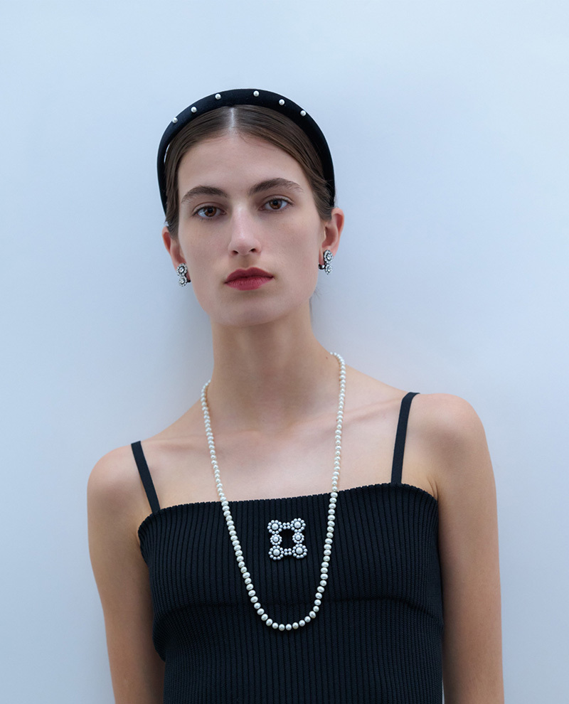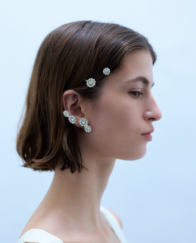 ●雙層水晶花朵設計, 金屬邊框勾勒高貴氣息