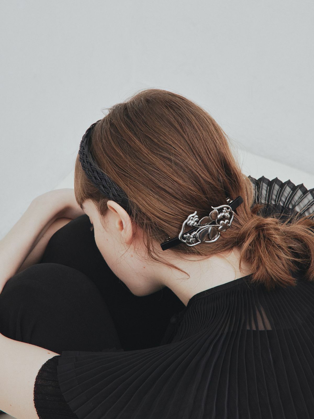 我們將流行在1915年代摩登女性中的一種名叫“廂髮”的髮髻,昇華為具有懷舊情懷的現代設計。 使用寬版的髮夾,更能讓頭髮牢牢夾緊。 沉穩的銀色光澤很容易與黑色或棕色頭髮搭配,讓您看起更加優雅。 單獨佩戴時很有引人注目的存在感,建議與髮圈或髮簪疊戴使用,更能穿出現代感來。