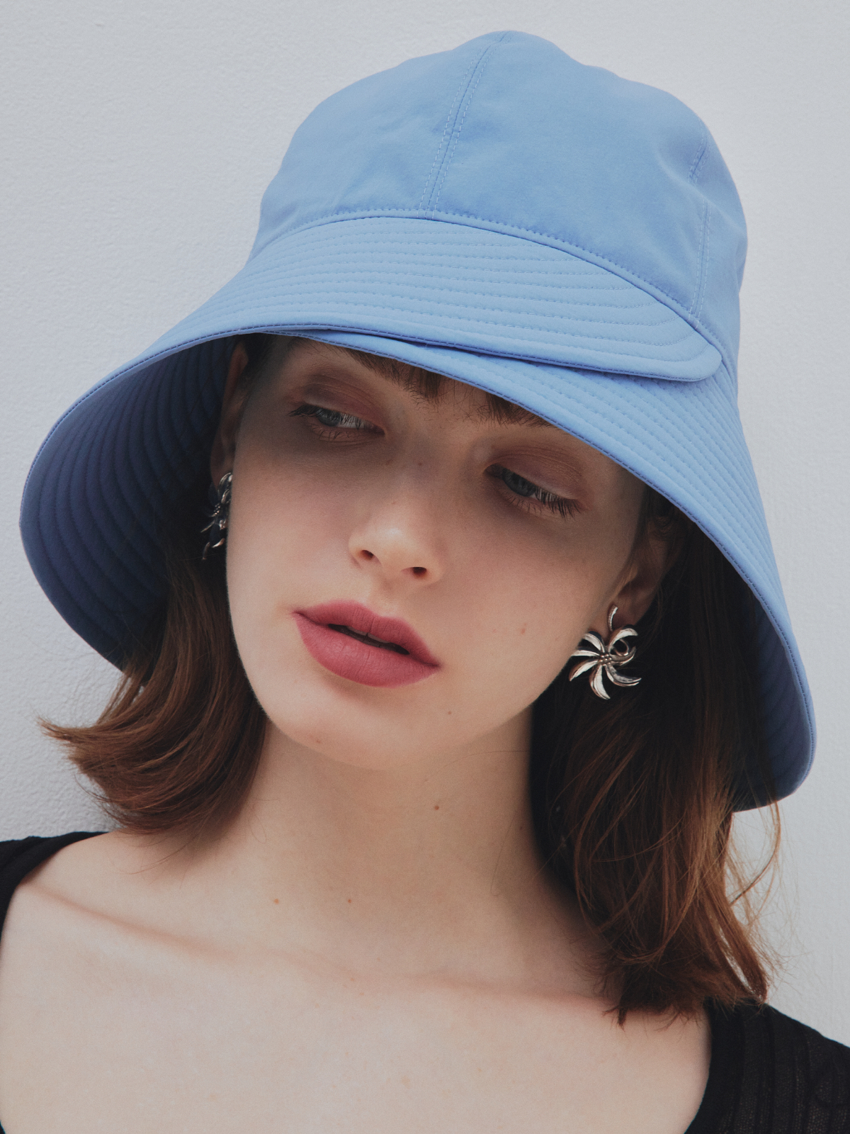 表現花瓣層層重疊模樣所製作的帽簷,將帽簷反摺後展現另一種風格