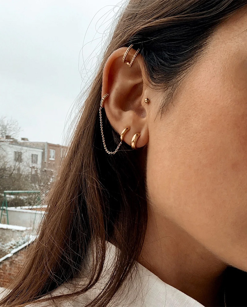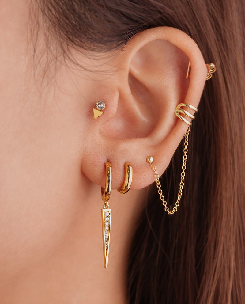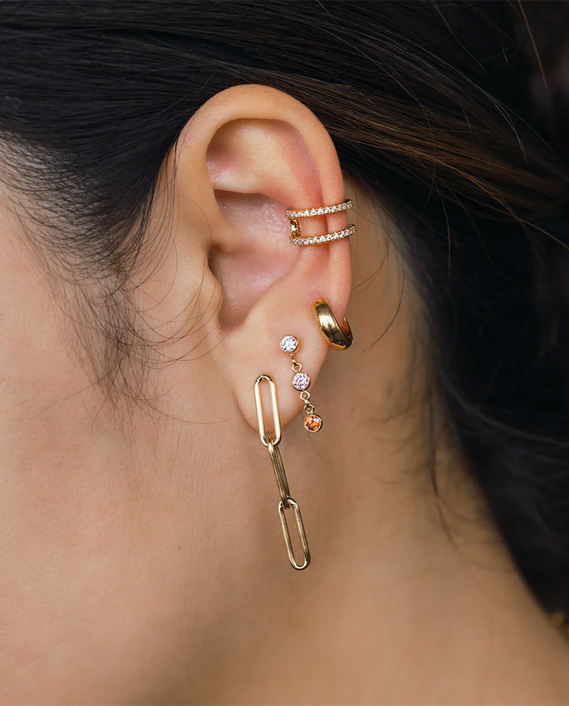 這款耳環的小圈設計展現了極致細緻,18K鍍金的金屬質感猶如陽光灑在水面,熠熠生輝 ,散發出耀眼的氛圍