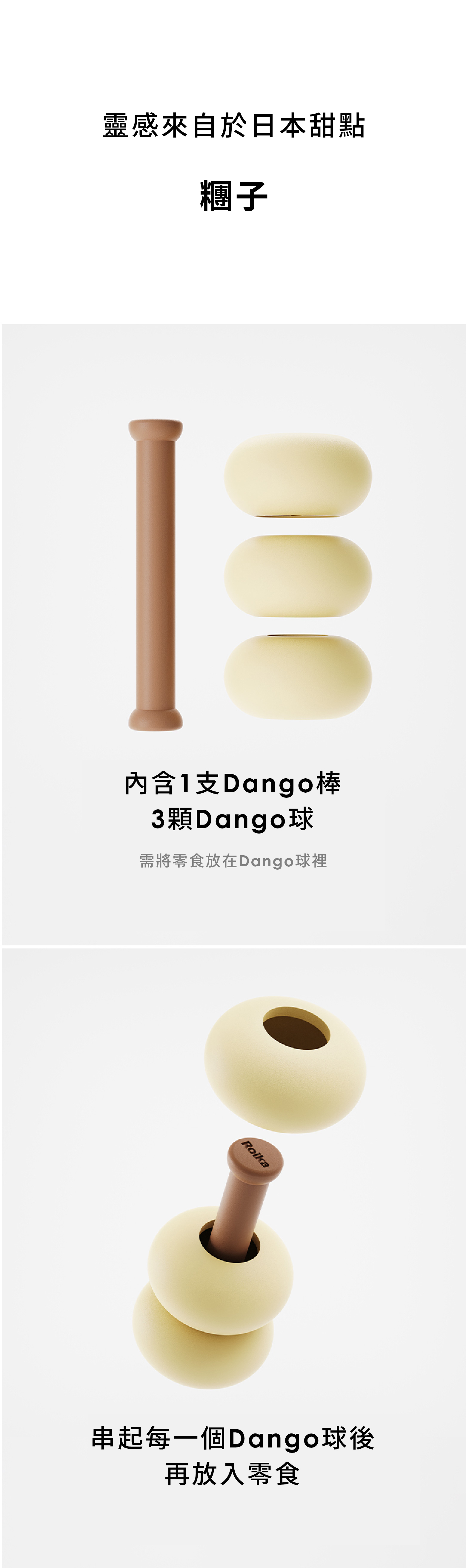 Roika漏食玩具Dango有多種拆卸裝配方式;