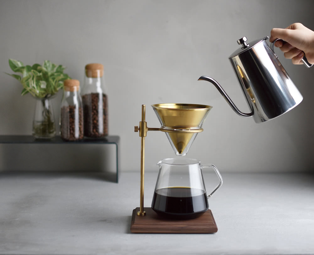 KINTO 2016為咖啡迷打造復古感極重的SLOW COFFEE STYLE specialty系列,以完美的黃銅支架吸引住每一個人的目光,輕鬆的旋轉支架銅扣,自由的調整你喜愛的濾杯高度,結合核桃色仿舊造型的木架板,彷彿進入了專屬於你的平行時空,不論是咖啡壺、陶瓷濾杯、咖啡杯,都提供各款容量與材質的選擇,讓您都能輕易選到最適合自己風格與份量的KINTO咖啡器具!